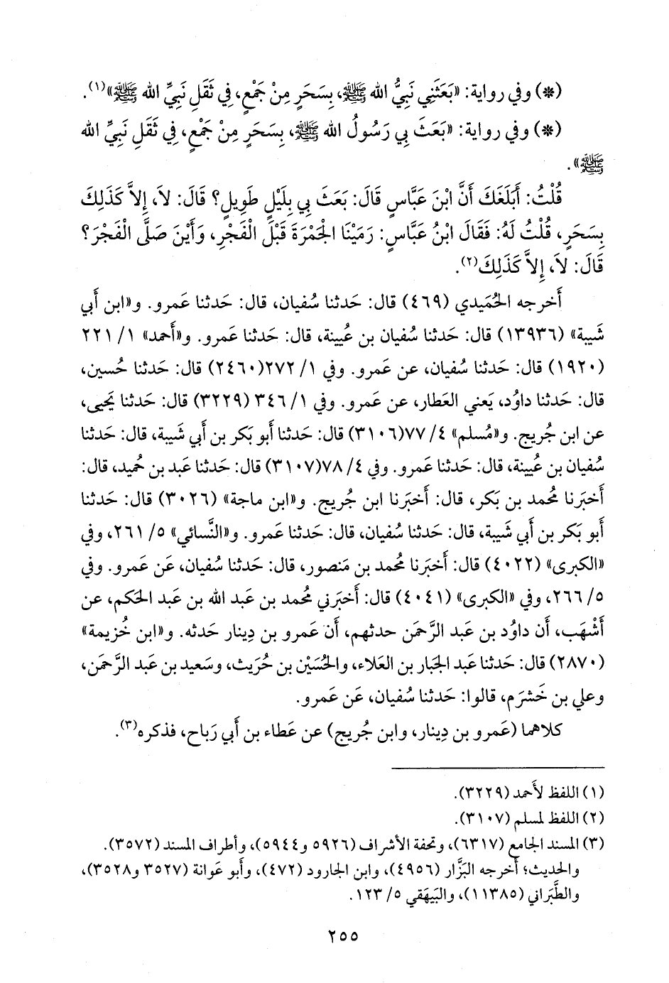 وفي ١/ ٣٤٦ (٣٢٢٩) قال: حدثنا يحيى، عن ابن جُريج. و «مسلم» ٤/ ٧٧ (٣١٠٦) قال: حدثنا أَبو بكر بن أبي شيبة، قال: حدثنا سفيان بن عُيينة، قال: حدثنا عَمرو. وفي ٤/ ٧٨ (٣١٠٧) قال: حدثنا عَبد بن حُميد، قال: أخبرنا محمد بن بكر، قال: أخبرنا ابن جُريج. و «ابن ماجة» (٣٠٢٦) قال: حدثنا أَبو بكر بن أبي شيبة، قال: حدثنا سفيان، قال: حدثنا عَمرو. و «النَّسَائي» ٥/ ٢٦١, وفي «الكبرى» (٤٠٢٢) قال: أخبرنا محمد بن منصور، قال: حدثنا سفيان، عن عَمرو. وفي ٥/ ٢٦٦, وفي «الكبرى» (٤٠٤١) قال: أخبرني محمد بن عبد الله بن عبد الحكم، عن أشهب، أن داود بن عبد الرَّحمَن حدثهم، أن عَمرو بن دينار حدثه. و «ابن خزيمة» (٢٨٧٠) قال: حدثنا عبد الجبار بن العلاء، والحسين بن حريث، وسعيد بن عبد الرَّحمَن، وعلي بن خَشرَم، قالوا: حدثنا سفيان، عن عَمرو.