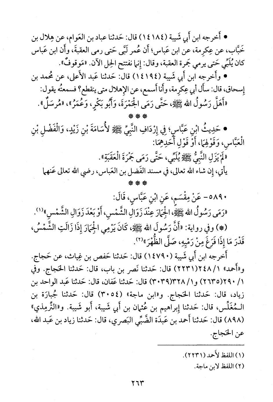 • حديث ابن عباس؛ في إرداف النبي صَلى الله عَليه وسَلم لأُسامة بن زيد، والفضل بن العباس، وقولهما، أو قول أحدهما: