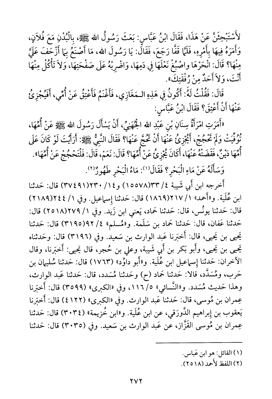 و «أَبو داود» (١٧٦٣) قال: حدثنا سليمان بن حرب، ومُسَدَّد، قالا: حدثنا حماد (ح) وحدثنا مُسدد، قال: حدثنا عبد الوارث، وهذا حديث مُسدد. و «النَّسَائي» ٥/ ١١٦، وفي «الكبرى» (٣٥٩٩) قال: أخبرنا عمران بن موسى، قال: حدثنا عبد الوارث. وفي «الكبرى» (٤١٢٢) قال: أخبرنا يعقوب بن إبراهيم الدورقي، عن ابن عُلَية. و «ابن خزيمة» (٣٠٣٤) قال: حدثنا عمران بن موسى القزاز، عن عبد الوارث بن سعيد. وفي (٣٠٣٥) قال: حدثنا