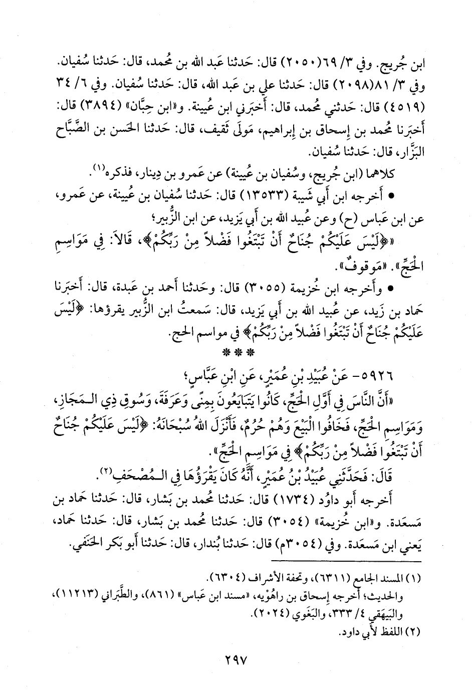 - أَخرجه أَبو داود (١٧٣٥) قال: حدثنا أحمد بن صالح، قال: حدثنا ابن أبي فُديك، قال: أخبرني ابن أبي ذِئب، عن عُبيد بن عُمير، قال أحمد بن صالح كلاما معناه، أنه مولى ابن عباس، عن عبد الله بن عباس؛ أن الناس في أول ما كان الحج، كانوا يبيعون، فذكر معناه، إلى قوله: مواسم الحج.