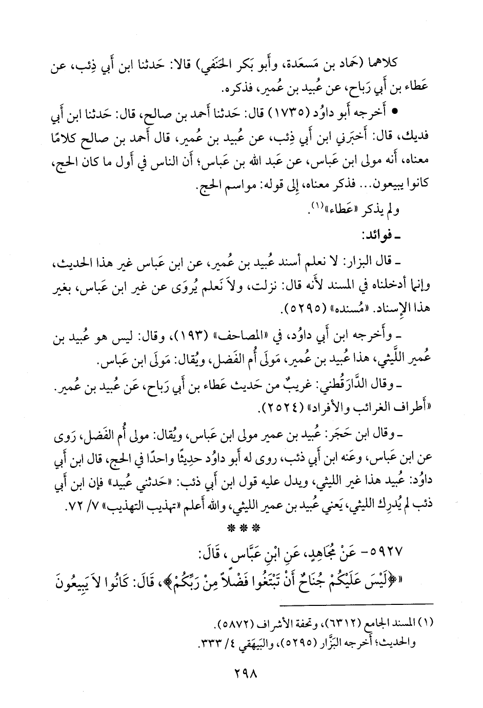 - لفظ (١٣٥٣٨): «عن مجاهد؛ {ليس عليكم جناح أن تبتغوا فضلا من ربكم} التجارة في المواسم أحلت لهم، كانوا لا يتبايعون في الجاهلية بعرفة، ولا بمنى.