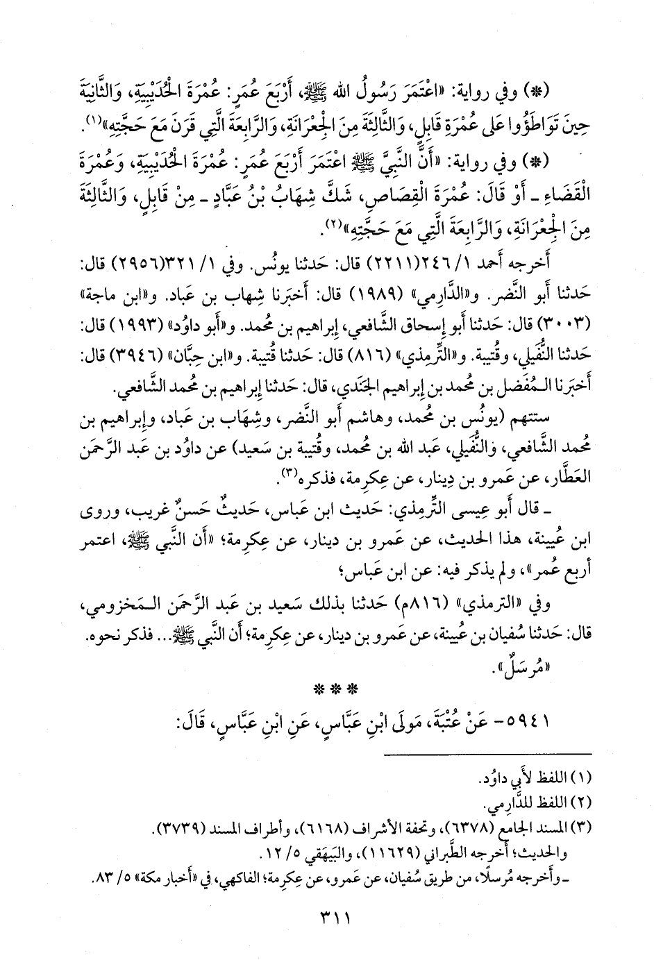 - قال التِّرمِذي: حديث ابن عباس، حديثٌ حسنٌ غريبٌ، وروى ابن عُيينة، هذا الحديث، عن عَمرو بن دينار، عن عكرمة؛ أن النبي صَلى الله عَليه وسَلم اعتمر أربع عمر، ولم يذكر فيه: عن ابن عباس؛