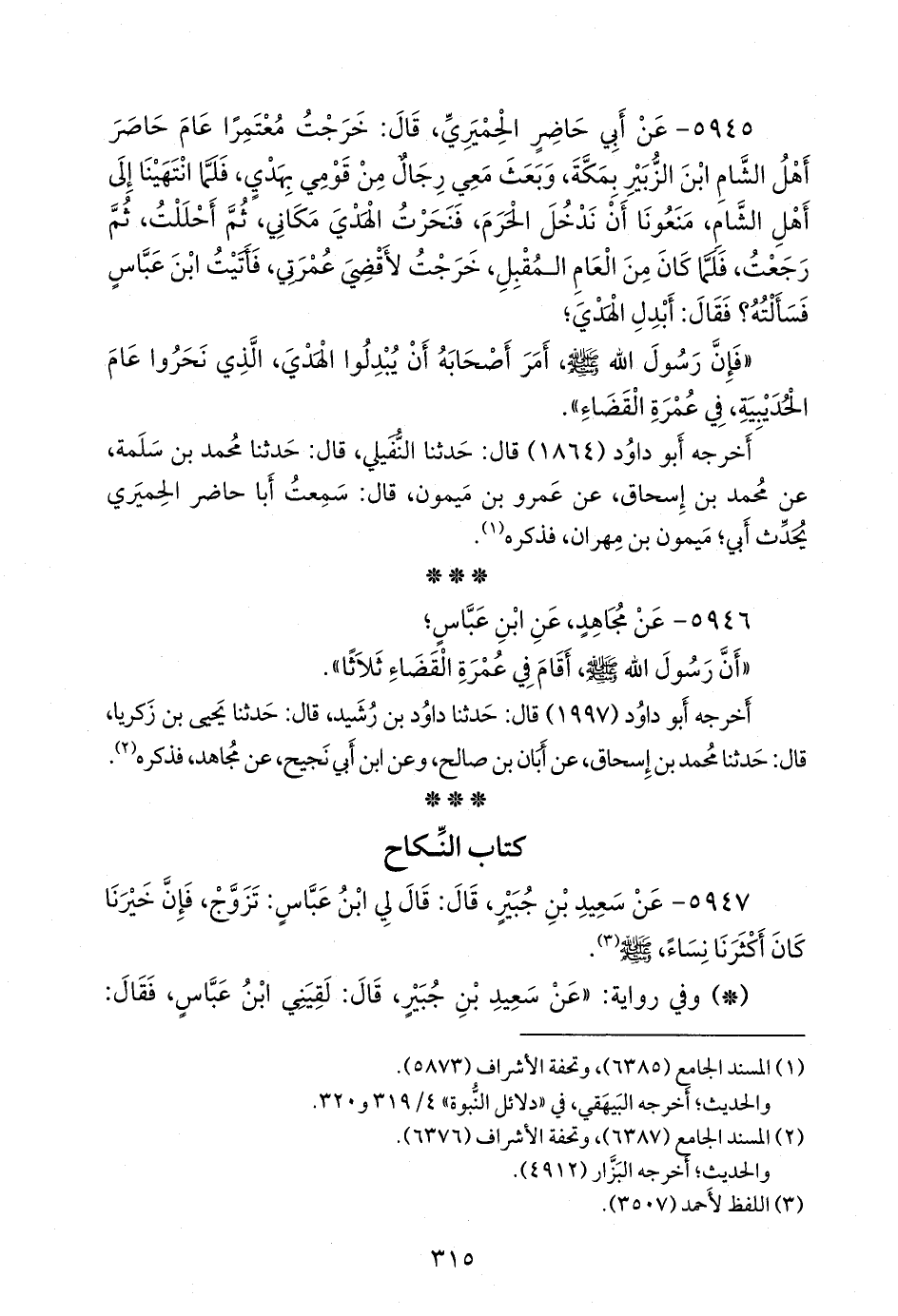 (¬٣) المسند الجامع (٦٤٤٨)، وتحفة الأشراف (٥٥٢٥)، وأطراف المسند (٣٣٠٩ و ٣٣٣٨)، وإتحاف الخِيرَة المَهَرة (٣٠٧١).
