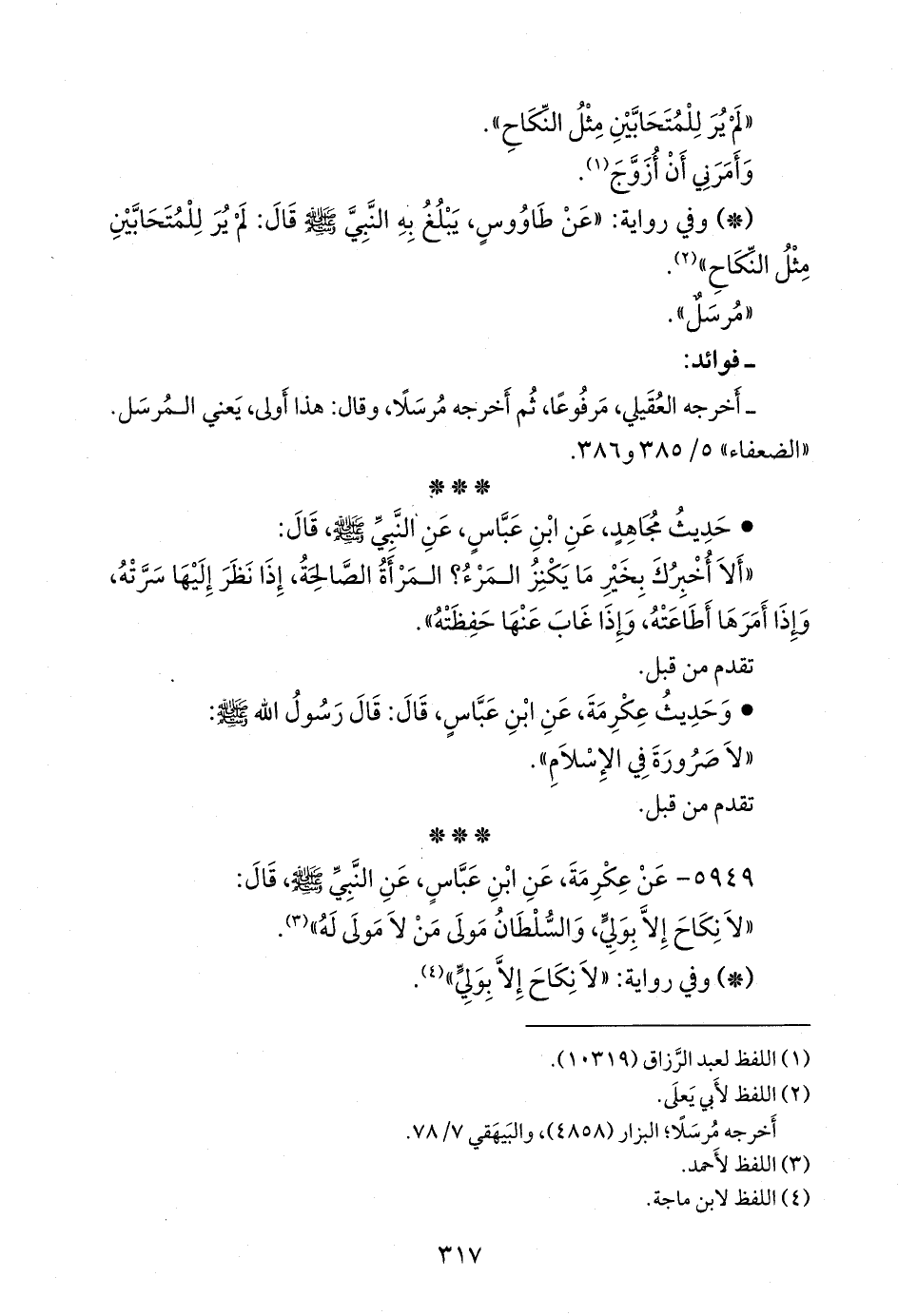 - وفي رواية: «عن ابن عباس، قال: لا نكاح إلا بولي، أو سلطان مرشد».