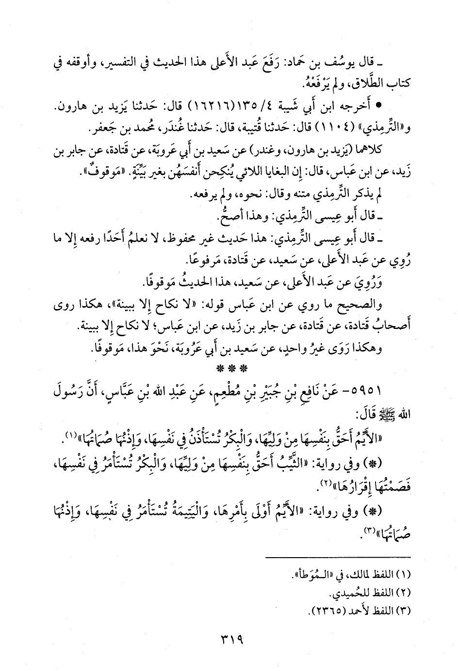 والصحيح ما روي عن ابن عباس قوله: «لا نكاح إلا ببينة»، هكذا روى أصحاب قتادة، عن قتادة، عن جابر بن زيد، عن ابن عباس؛ لا نكاح إلا ببينة.