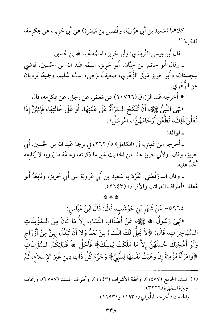 - وقال الدارقُطني: تفرد به سعيد بن أبي عَروبَة عن أبي حريز، وتابعه أَبو معاذ. «أطراف الغرائب والأفراد» (٢٦٤٣).