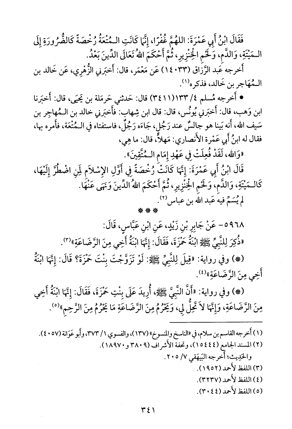 - وفي رواية: «عن ابن عباس، رضي الله عنهما، قال: قال النبي صَلى الله عَليه وسَلم في بنت حمزة: لا تحل لي، يحرم من الرضاع ما يحرم من النسب، هي بنت أخي من الرضاعة» (¬٤).
