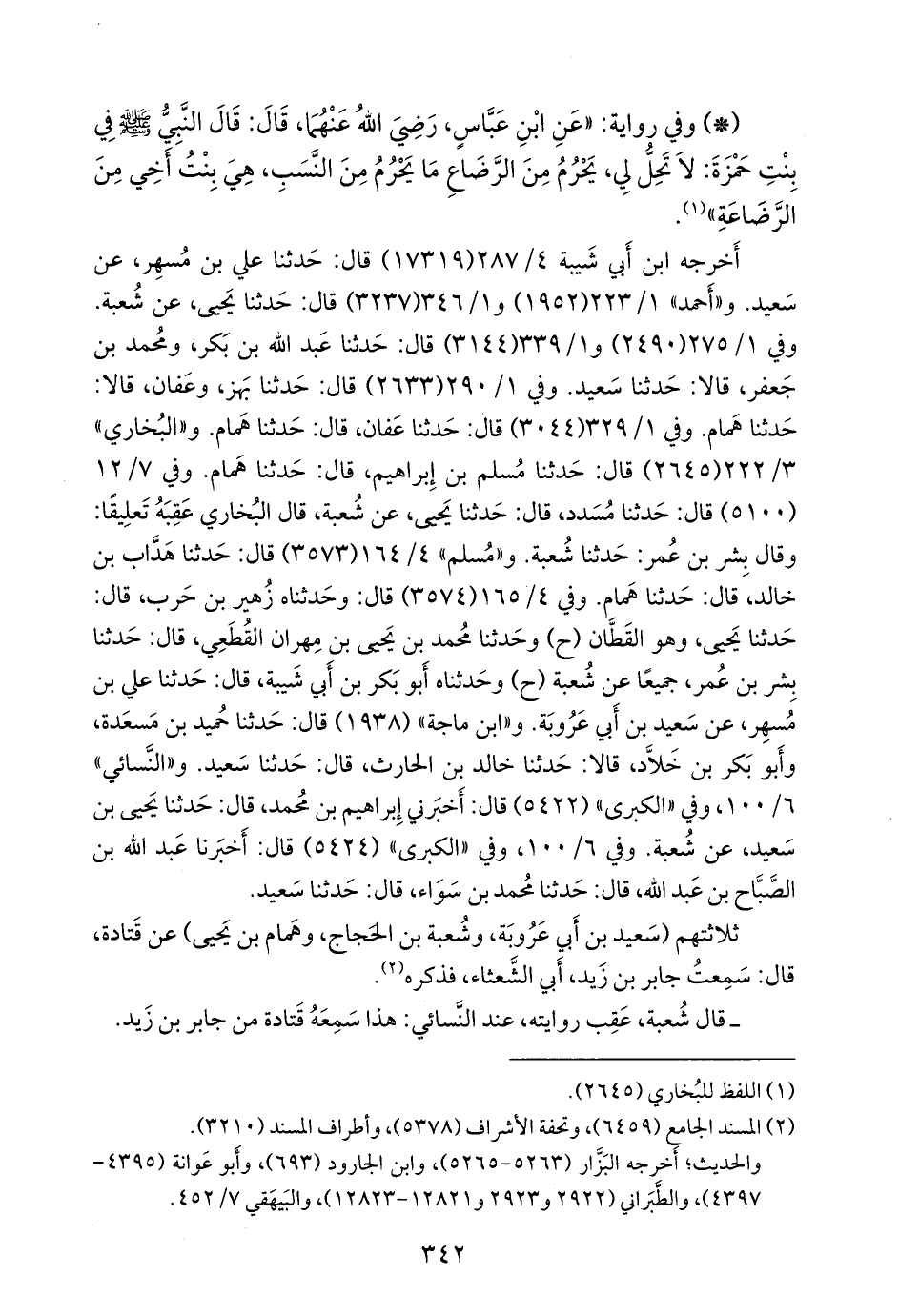 ثلاثتهم (سعيد بن أبي عَروبَة، وشعبة بن الحجاج، وهمام بن يحيى) عن قتادة، قال: سمعت جابر بن زيد أبي الشعثاء، فذكره (¬١).