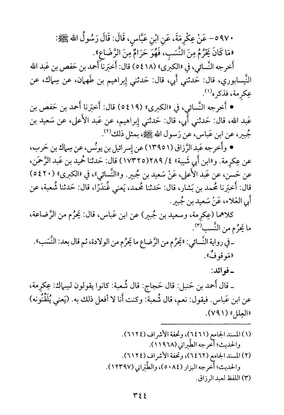 كلاهما (عكرمة، وسعيد بن جبير) عن ابن عباس، قال: يحرم من الرضاعة، ما يحرم من النسب (¬٢).