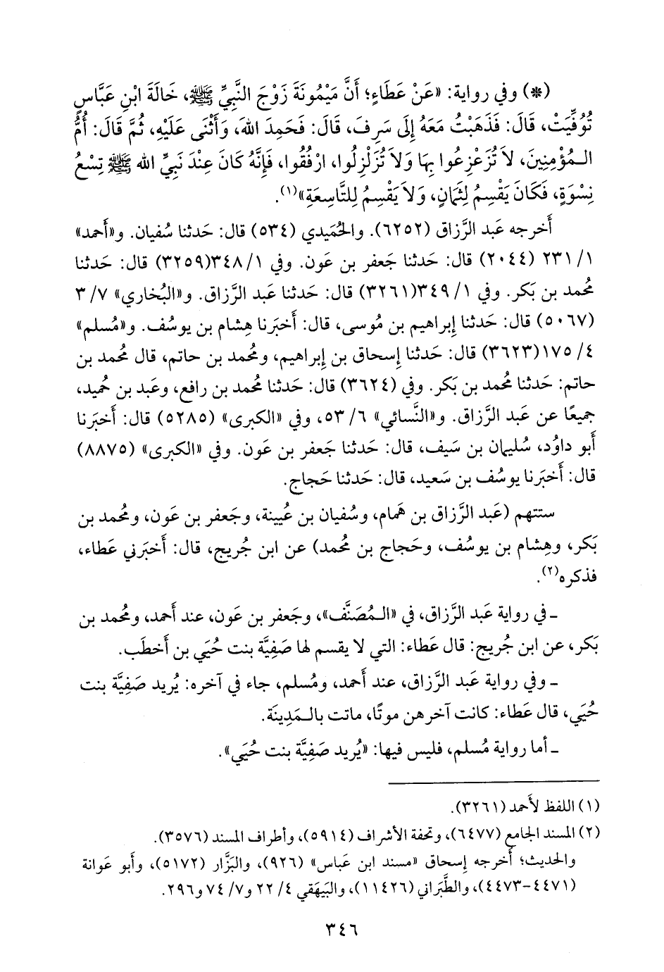 - في رواية عبد الرزاق في «المُصَنَّف»، وجعفر بن عون، عند أحمد، ومحمد بن بكر، عن ابن جُريج: قال عطاء: التي لا يقسم لها صفية بنت حيي بن أخطب.