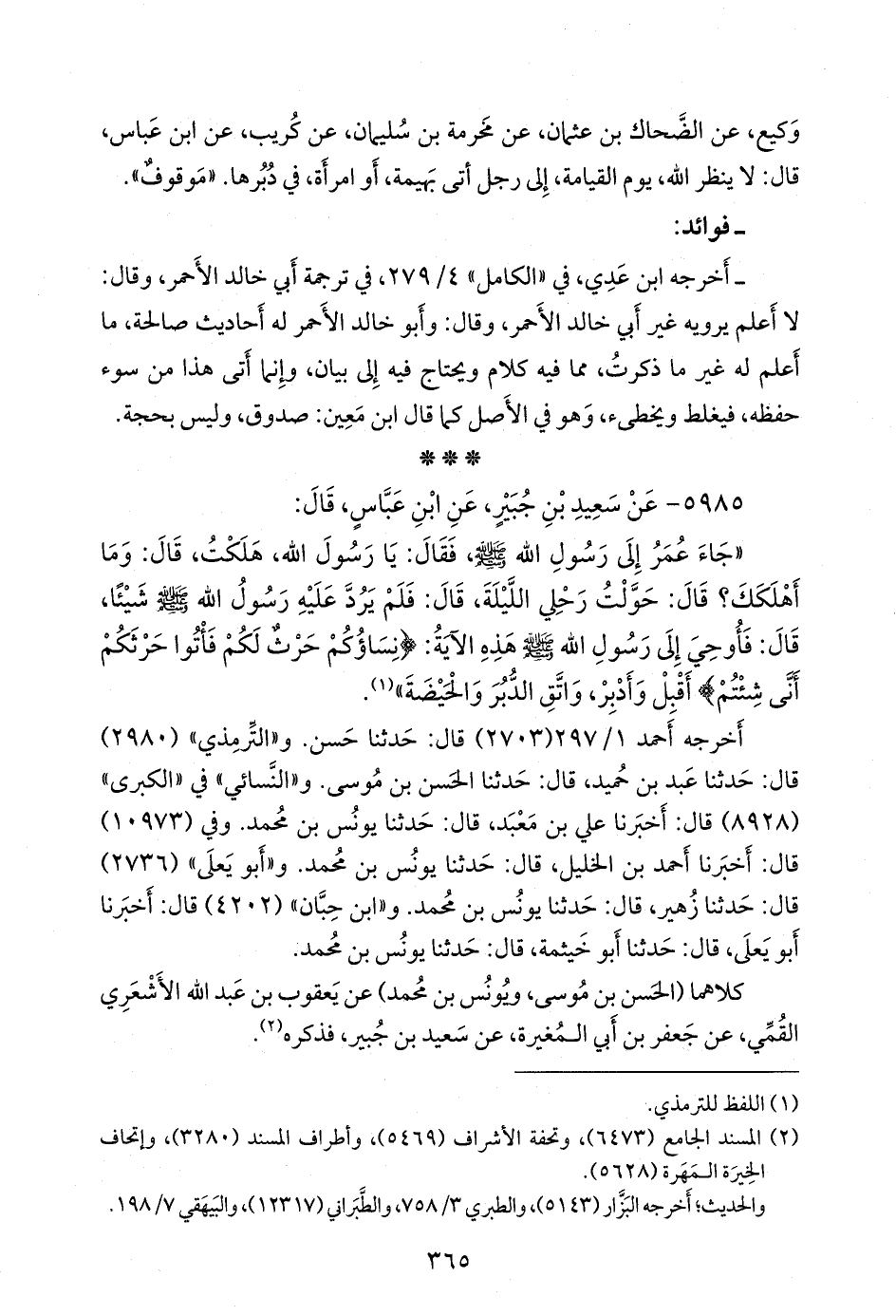 (¬٢) المسند الجامع (٦٤٧٣)، وتحفة الأشراف (٥٤٦٩)، وأطراف المسند (٣٢٨٠)، وإتحاف الخِيرَة المَهَرة (٥٦٢٨).