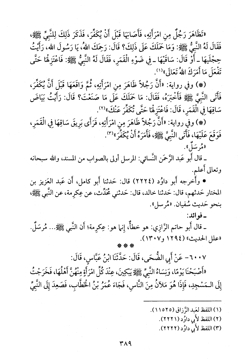(¬٣) هذا لا يعني صحة الحديث، كما هو معروف عند الدارسين لعلل الحديث، بل معناه أن هذا لا يصح متصلا، وأن صوابه الإرسال، والمرسل ليس بحجة.