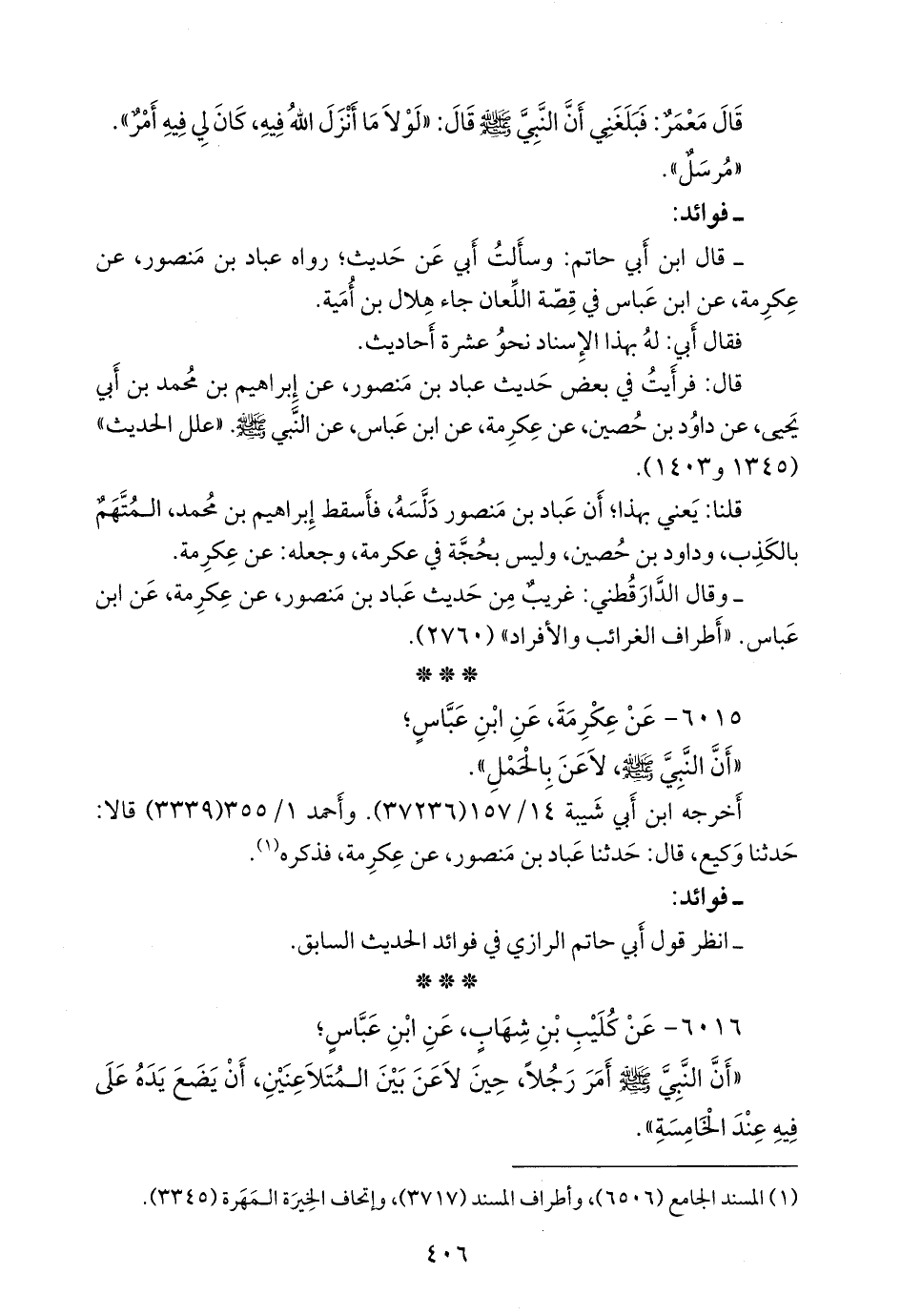 قال: فرأيت في بعض حديث عباد بن منصور، عن إبراهيم بن محمد بن أبي يحيى، عن داود بن حصين، عن عكرمة، عن ابن عباس، عن النبي صَلى الله عَليه وسَلم. «علل الحديث» (١٣٤٥ و ١٤٠٣).