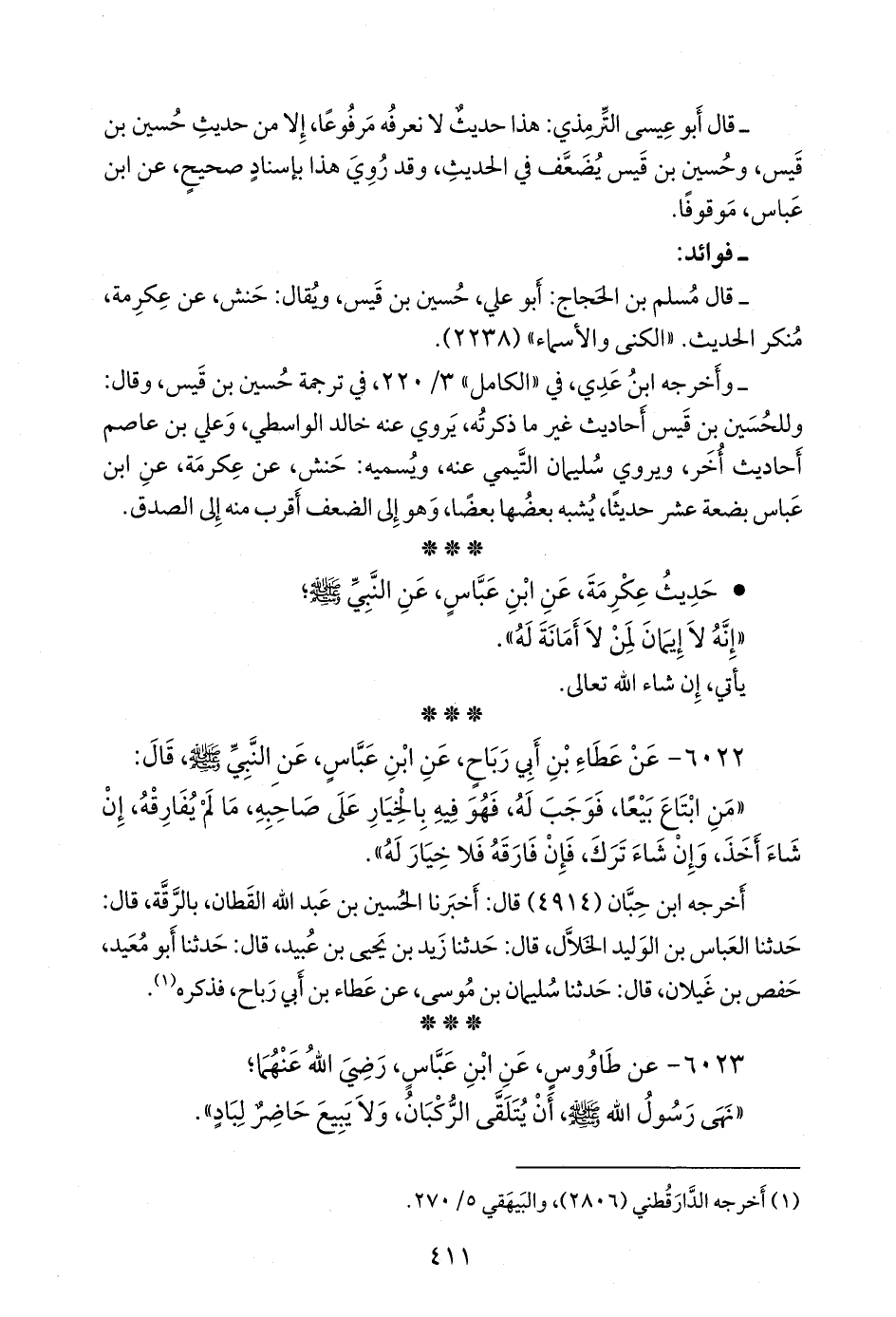 - قلنا: إِسناده ضعيفٌ؛ قال مسلم بن الحجاج: أَبو علي، حسين بن قيس، ويقال: حنش، عن عكرمة، منكر الحديث. «الكنى والأسماء» (٢٢٣٨).