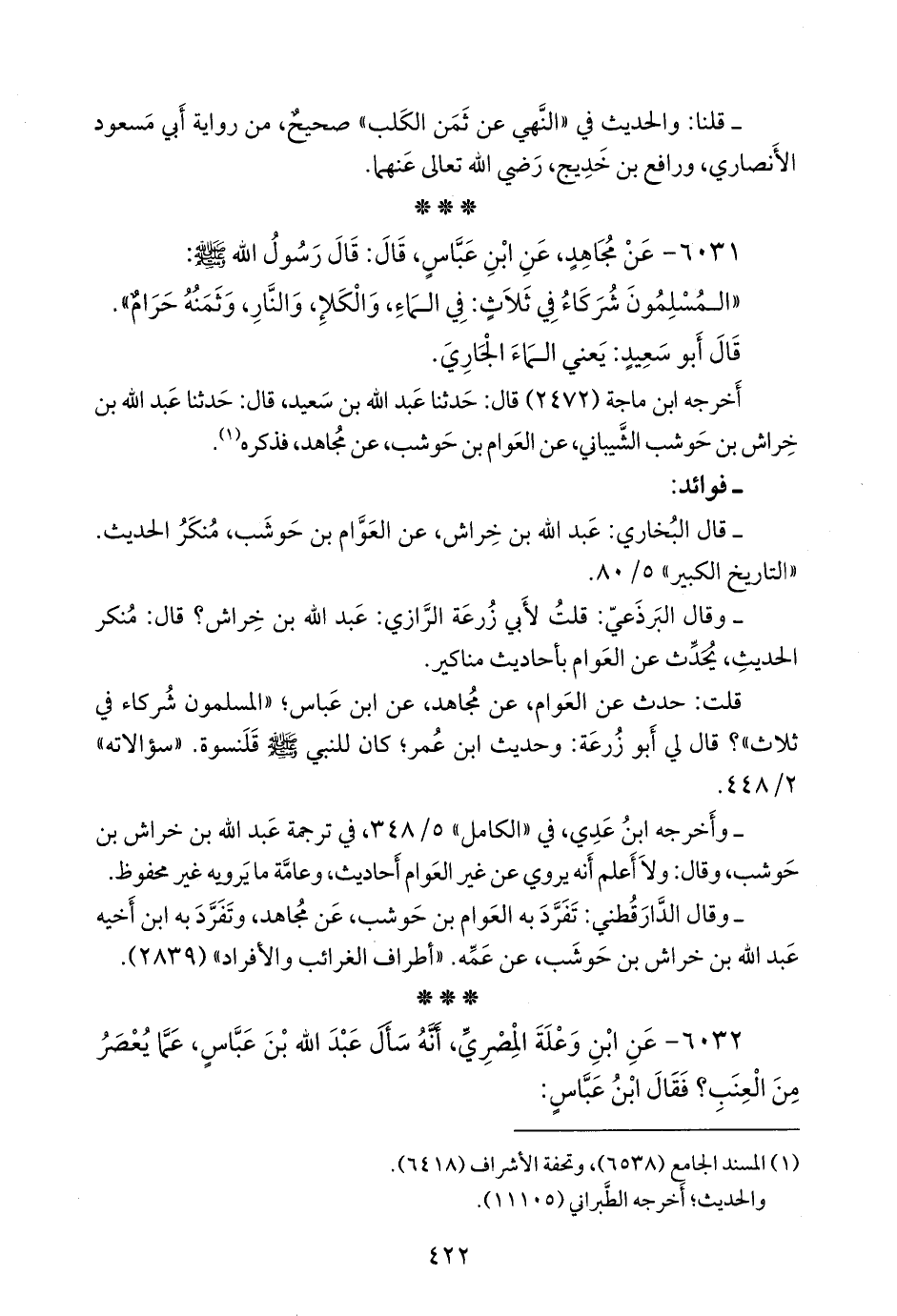 - وقال النَّسَائي: عبد الله بن خِراش، عن العوام بن حوشب، ليس بثقة. «الضعفاء والمتروكين» (٣٤٢).