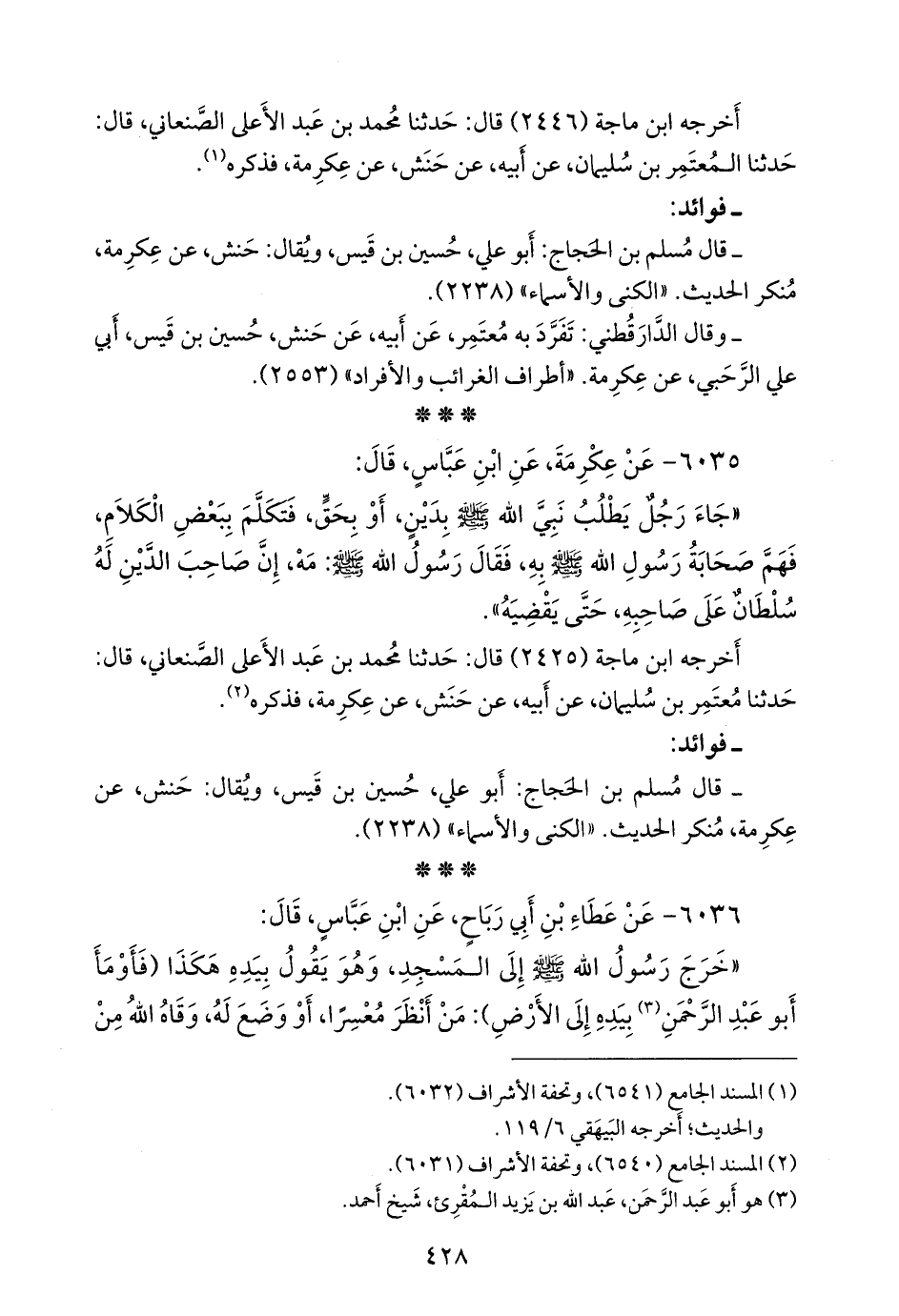 (¬٣) المسند الجامع (٦٥٣٦)، وأطراف المسند (٣٥٨٨)، ومَجمَع الزوائد ٤/ ١٣٣, والمطالب العالية (٣١٥٢ و ٣٢٧٤ م).