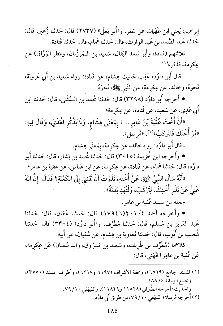 - وأخرجه ابن خزيمة (٣٠٤٥) قال: حدثنا محمد بن بشار، قال: حدثنا أَبو داود، قال: حدثنا همام، عن قتادة، عن عكرمة، عن ابن عباس، عن عقبة بن عامر؛