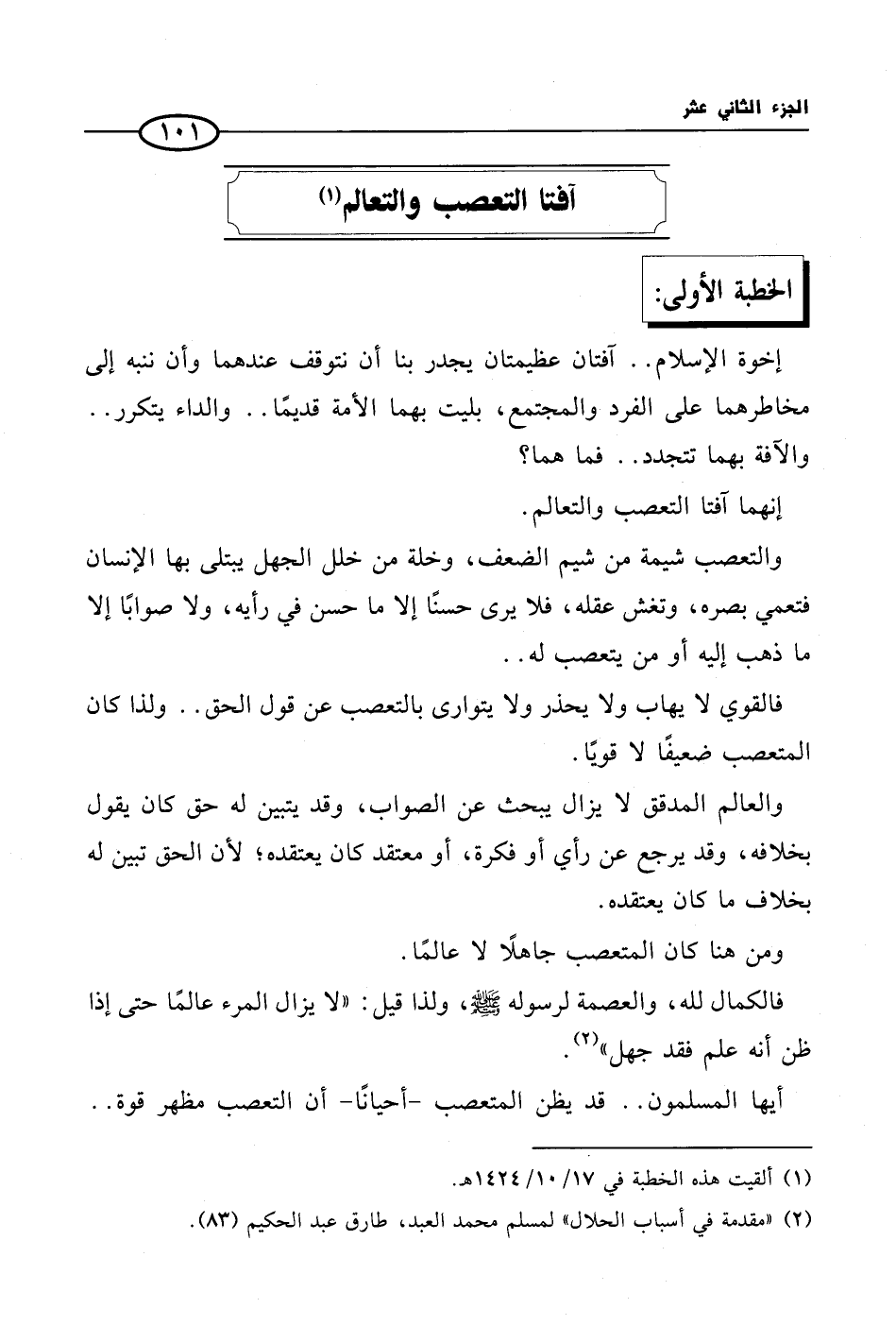 (¬1) ألقيت هذه الخطبة في 17/ 10/ 1424 هـ.
