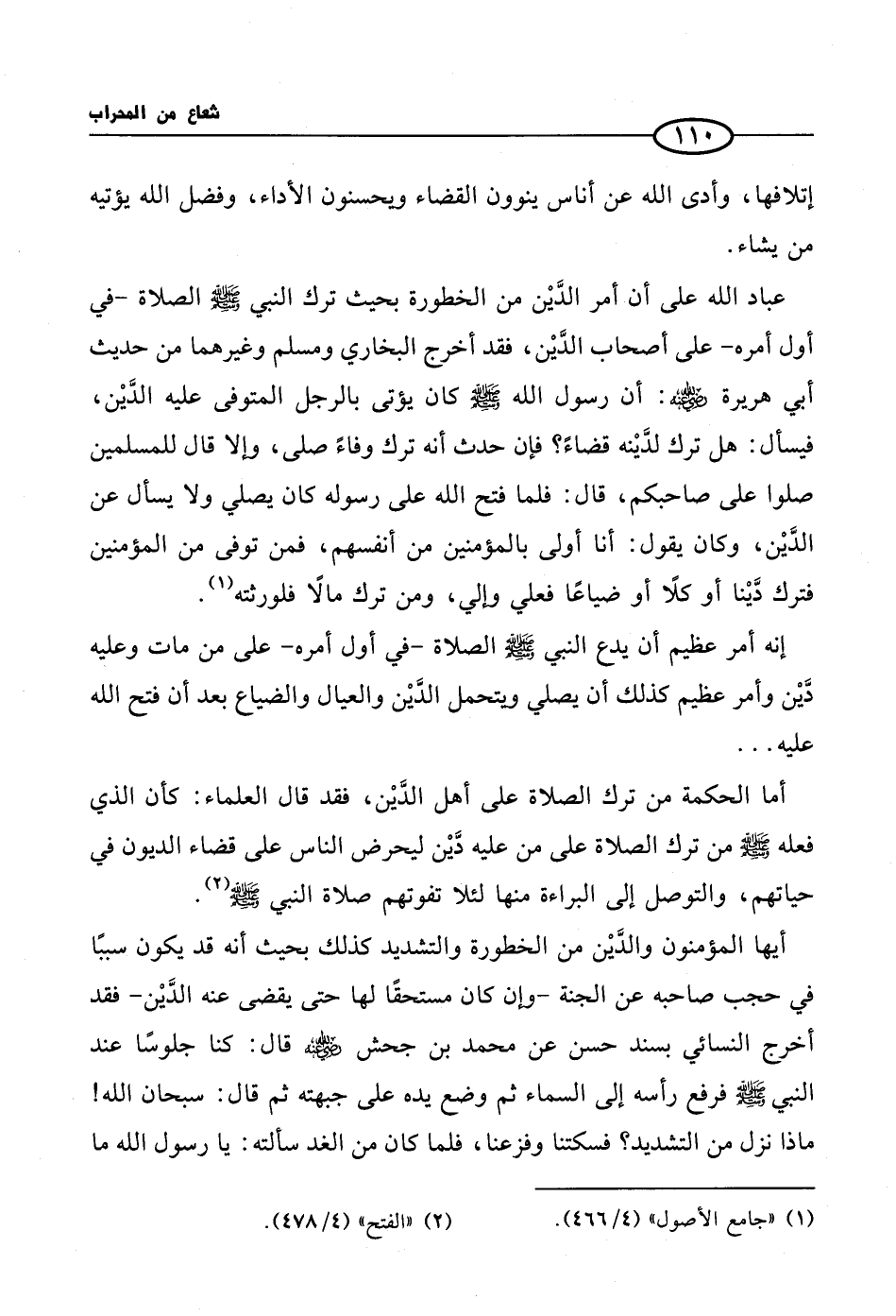 إنه أمر عظيم أن يدع النبي صلى الله عليه وسلم الصلاة- في أول أمره- على من مات وعليه دَّيْن وأمر عظيم كذلك أن يصلي ويتحمل الدَّيْن والعيال والضياع بعد أن فتح الله عليه ...
