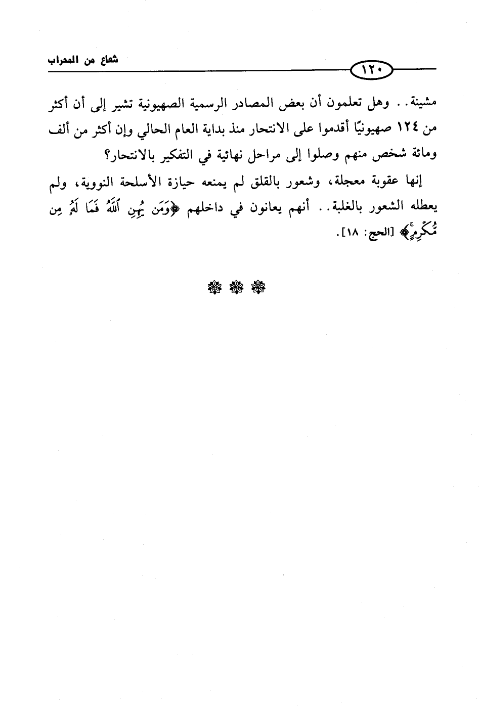 مشينة .. وهل تعلمون أن بعض المصادر الرسمية الصهيونية تشير إلى أن أكثر من 124 صهيونيًا أقدموا على الانتحار منذ بداية العام الحالي وإن أكثر من ألف ومائة شخص منهم وصلوا إلى مراحل نهائية في التفكير بالانتحار؟