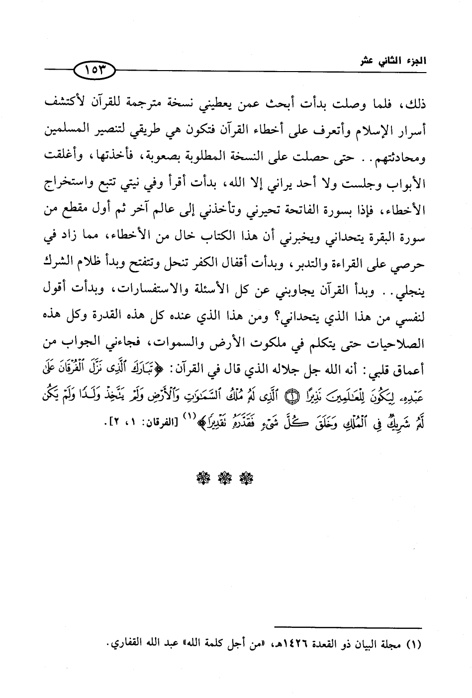 (¬1) (مجلة البيان ذو القعدة 1426 هـ من أجل كلمة الله/ عبد الله القفاري).