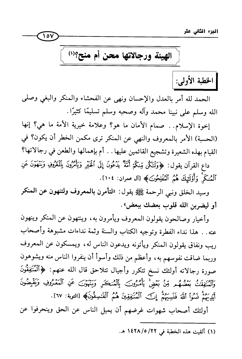(¬1) ألقيت هذه الخطبة في 22/ 5/ 1428 هـ.