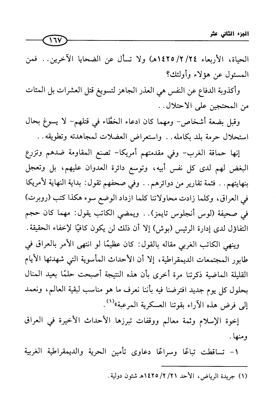 (¬1) (جريدة الرياض، الأحد 21/ 2/ 1425 هـ شئون دولية).