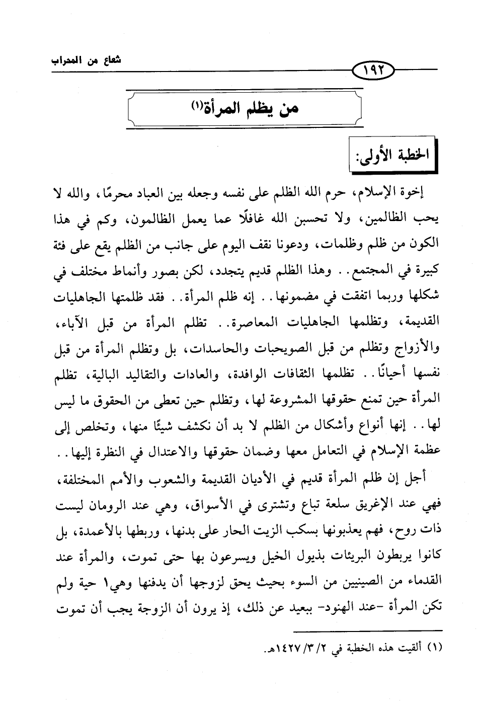 (¬1) ألقيت هذه الخطبة في 2/ 3/ 1427 هـ.