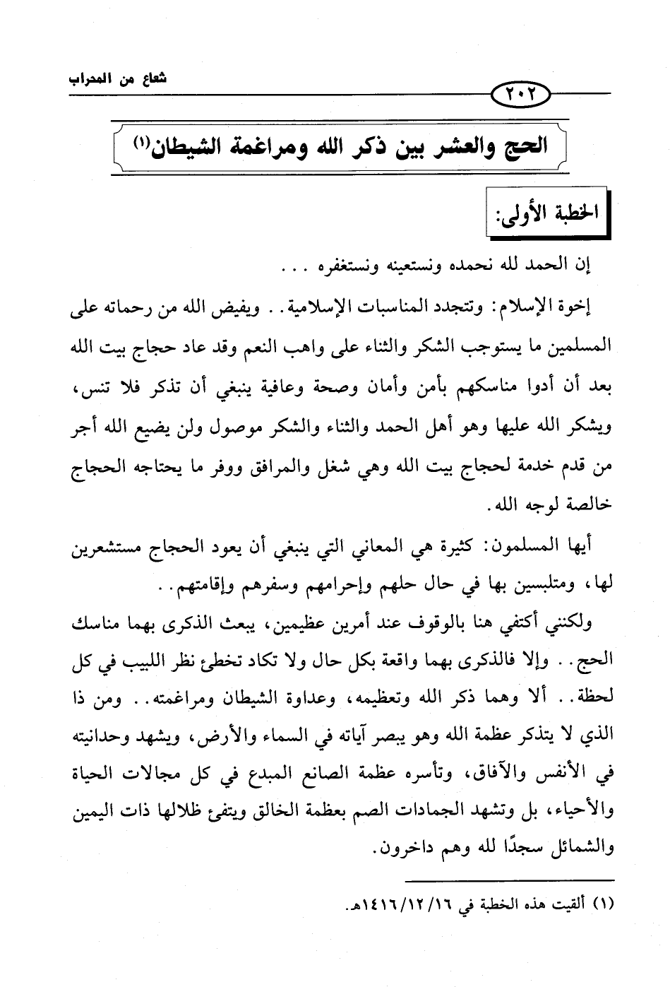 (¬1) ألقيت هذه الخطبة في 16/ 12/ 1416 هـ.