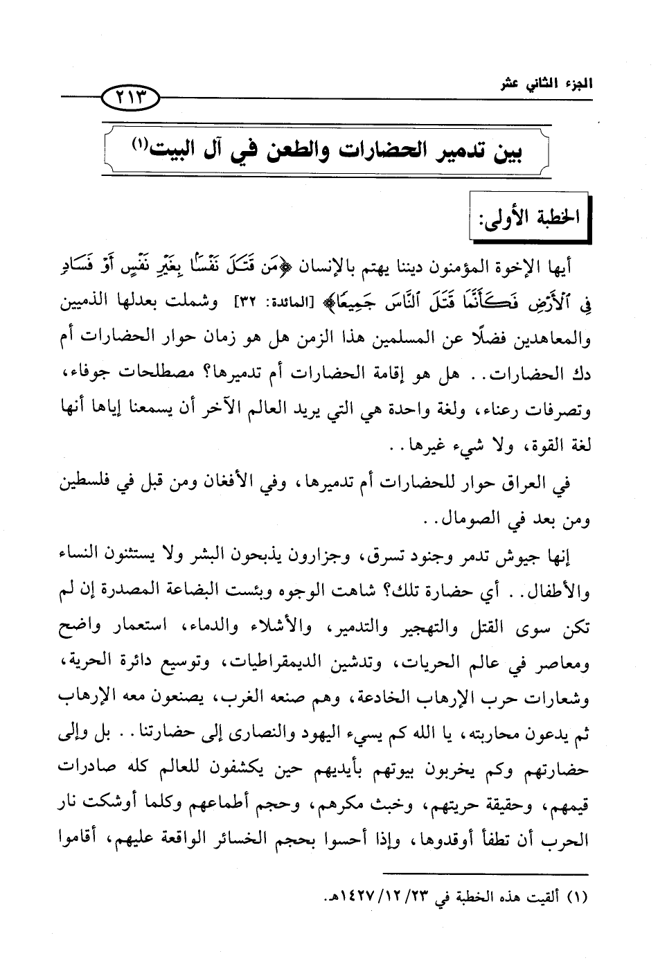 (¬1) ألقيت هذه الخطبة في 23/ 12/ 1427 هـ.