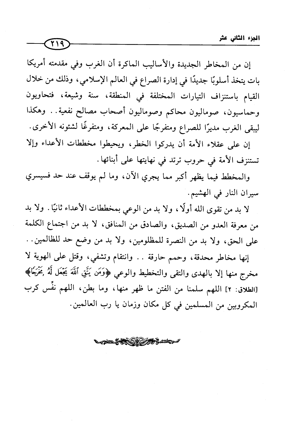 إن على عقلاء الأمة أن يدركوا الخطر، ويحيطوا مخططات الأعداء وإلا تستنزف الأمة في حروب ترتد شهادتها على أبنائها.