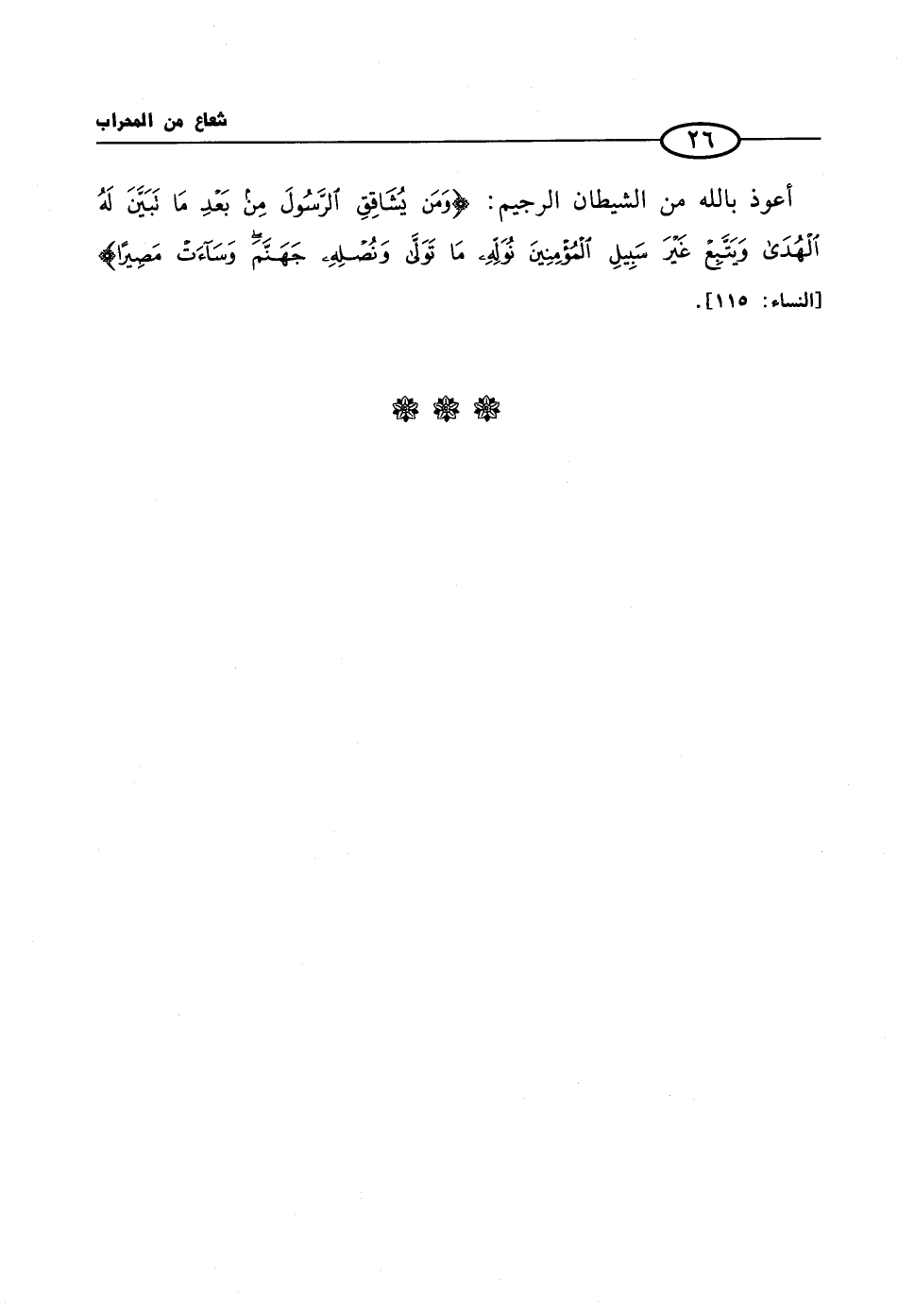 أعوذ بالله من الشيطان الرجيم: {وَمَن يُشَاقِقِ الرَّسُولَ مِن بَعْدِ مَا تَبَيَّنَ لَهُ الْهُدَى وَيَتَّبِعْ غَيْرَ سَبِيلِ الْمُؤْمِنِينَ نُوَلِّهِ مَا تَوَلَّى وَنُصْلِهِ جَهَنَّمَ وَسَاءتْ مَصِيرًا} [النساء: 115].