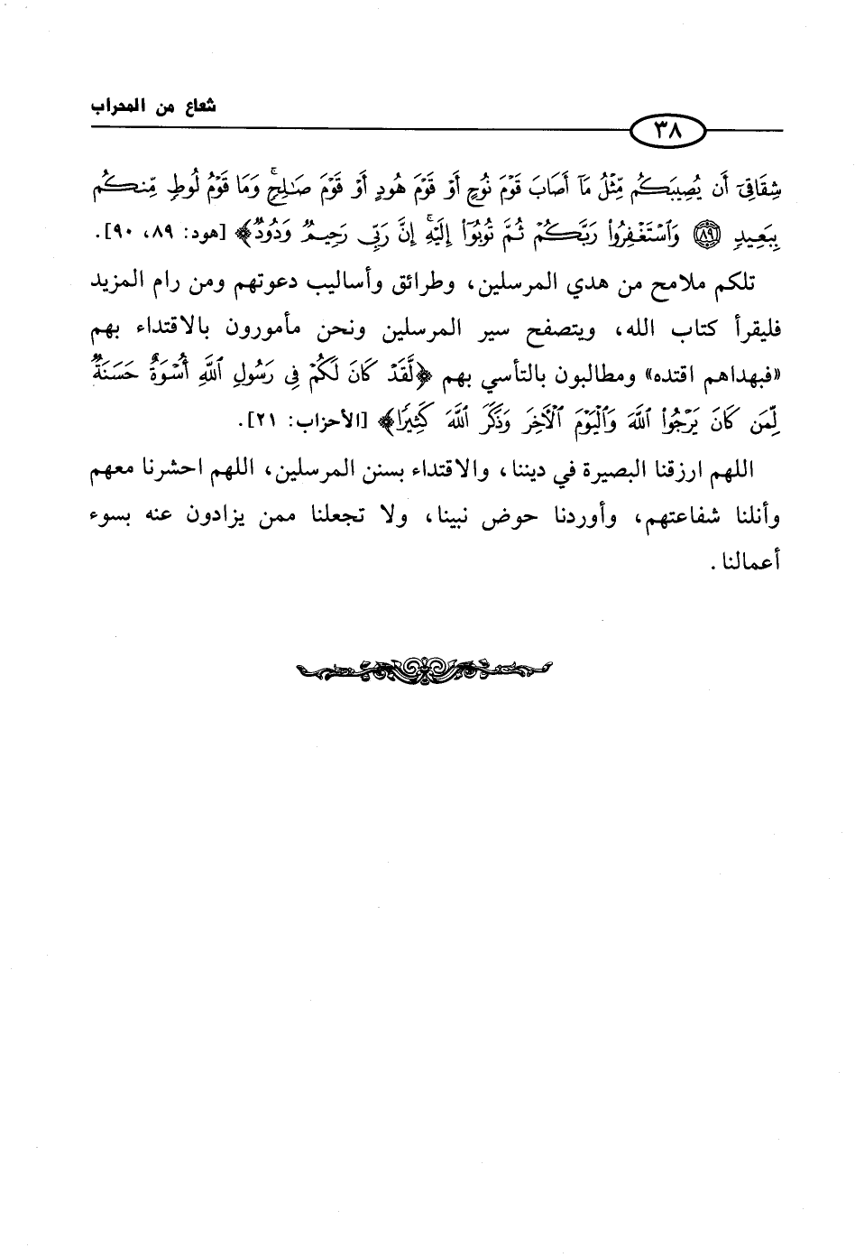 اللهم ارزقنا البصيرة في ديننا، والاقتداء بسنن المرسلين، اللهم احشرنا معهم وأنلنا شفاعتهم، وأوردنا حوض نبينا، ولا تجعلنا ممن يزادون عنه بسوء أعمالنا.