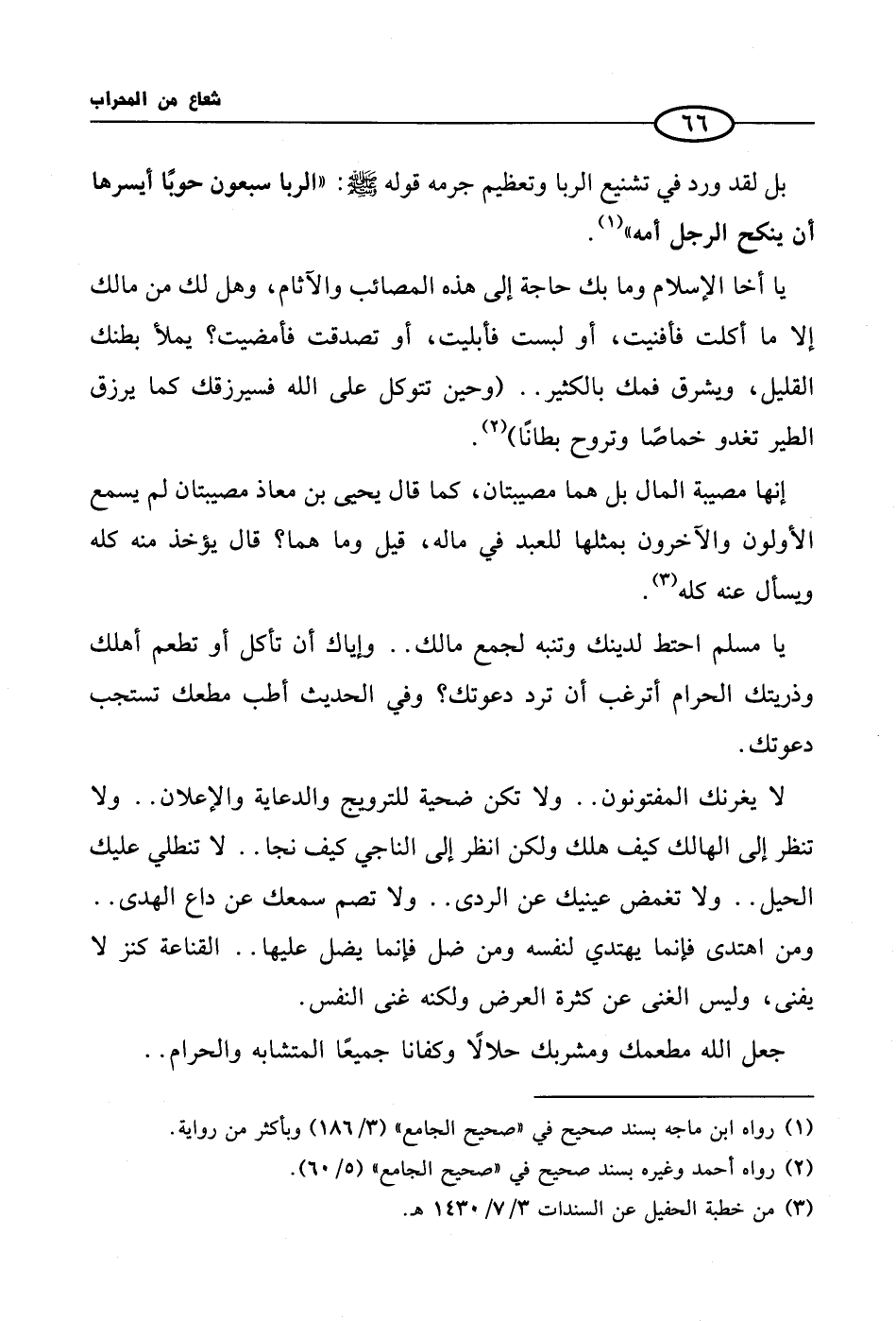 (¬3) (من خطبة الحفيل عن السندات 3/ 7/ 1430 هـ).