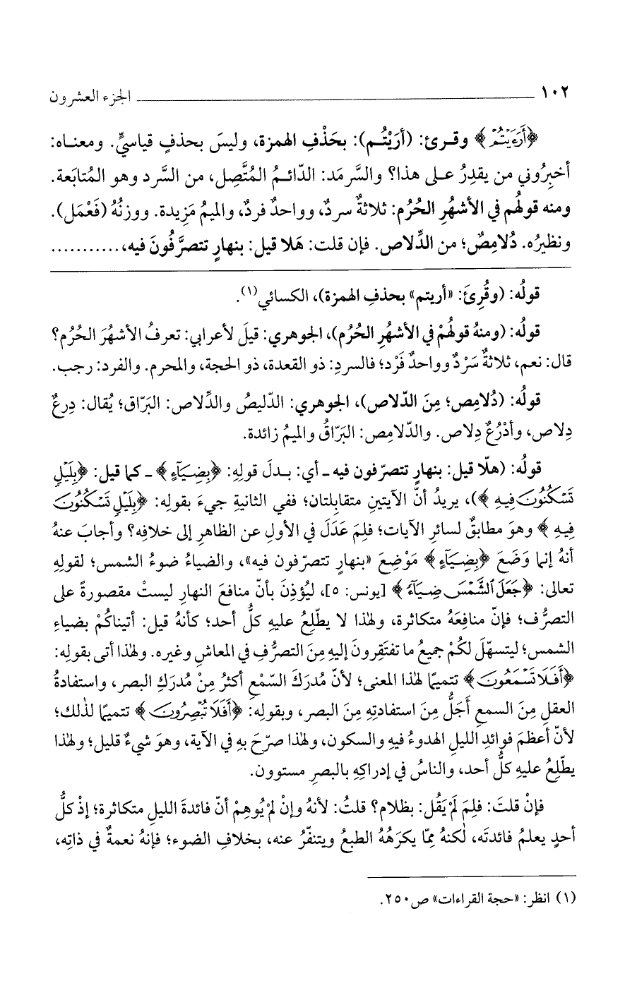 قولُه: (وقُرِئَ: ((أريتم)) بحذفِ الهمزة)، الكسائي.