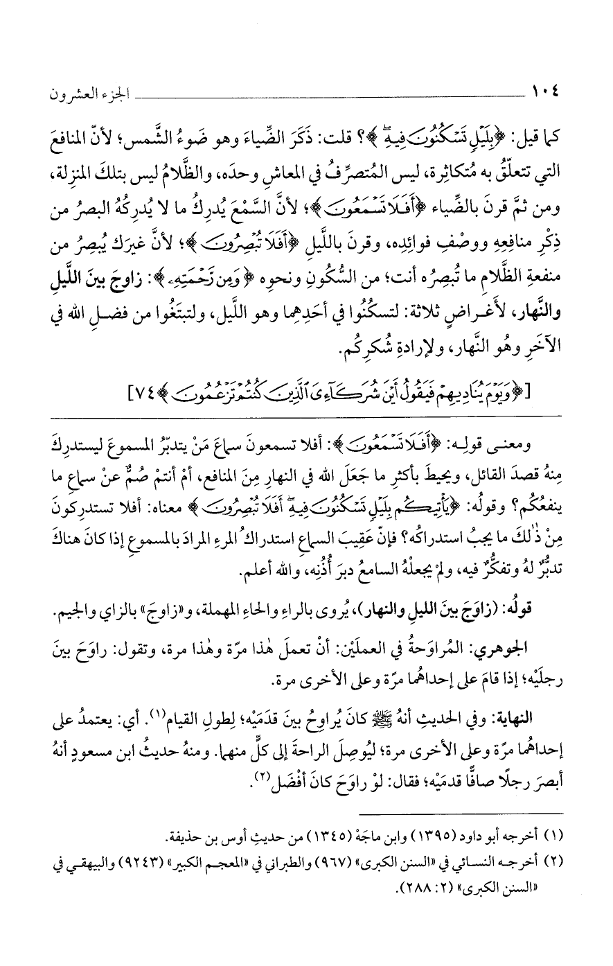 قولُه: (زاوَجَ بينَ الليلِ والنهار)، يُروى بالراءِ والحاءِ المهملة، و ((زاوجَ)) بالزاي والجيم.
