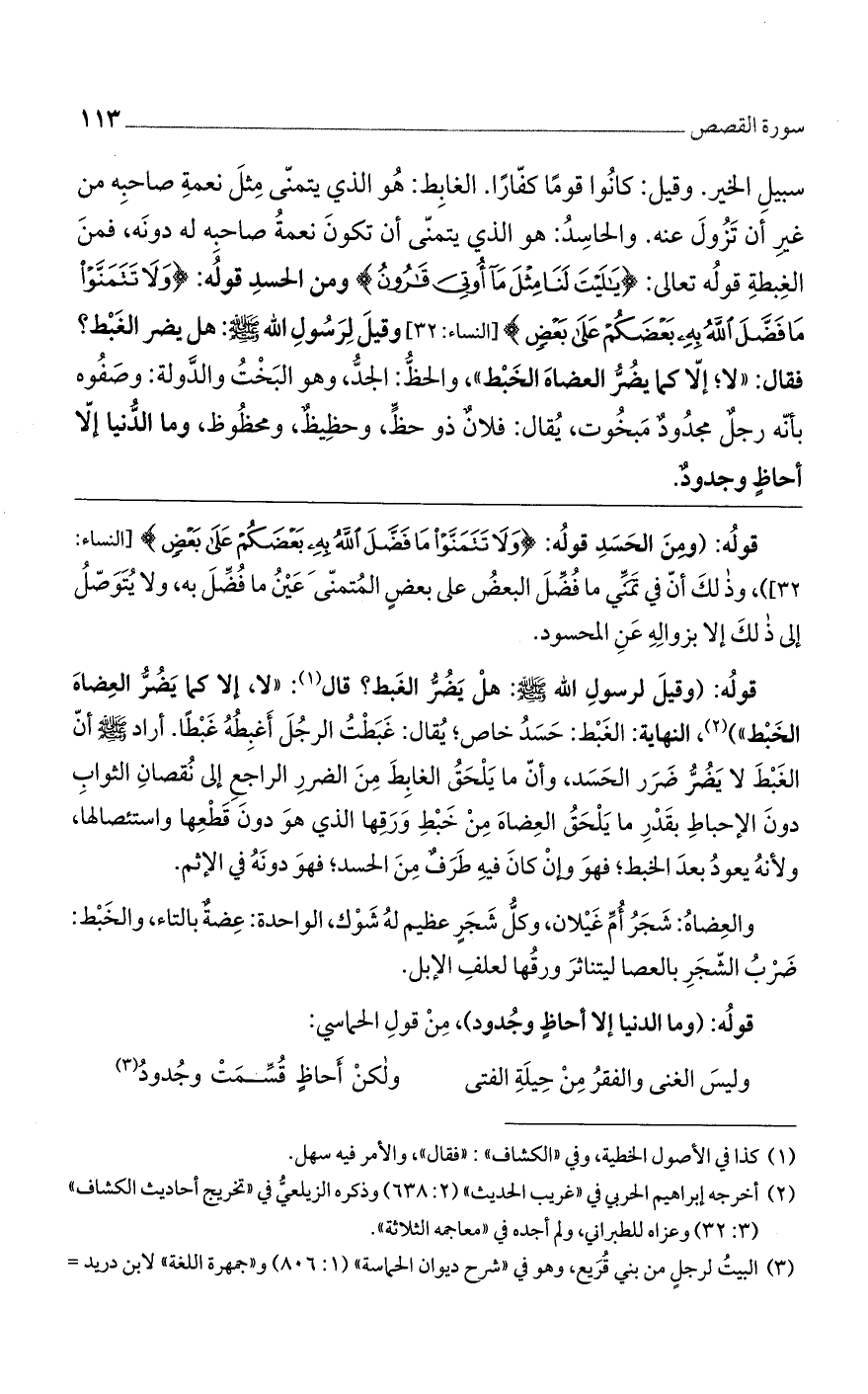 قولُه: (ومِنَ الحَسَدِ قولُه: {وَلاَ تَتَمَنَّوْا مَا فَضَّلَ اللهُ بِهِ بَعْضَكُمْ عَلَى بَعْضٍ} [النساء: 32])، وذلكَ أنّ تَمَنِّي ما فُضِّلَ البعضُ على بعضٍ المُتمنّي عَيْنُ ما فُضِّلَ به، ولا يُتَوَصّلُ إلى ذلكَ إلا بزوالِهِ عَنِ المحسود.