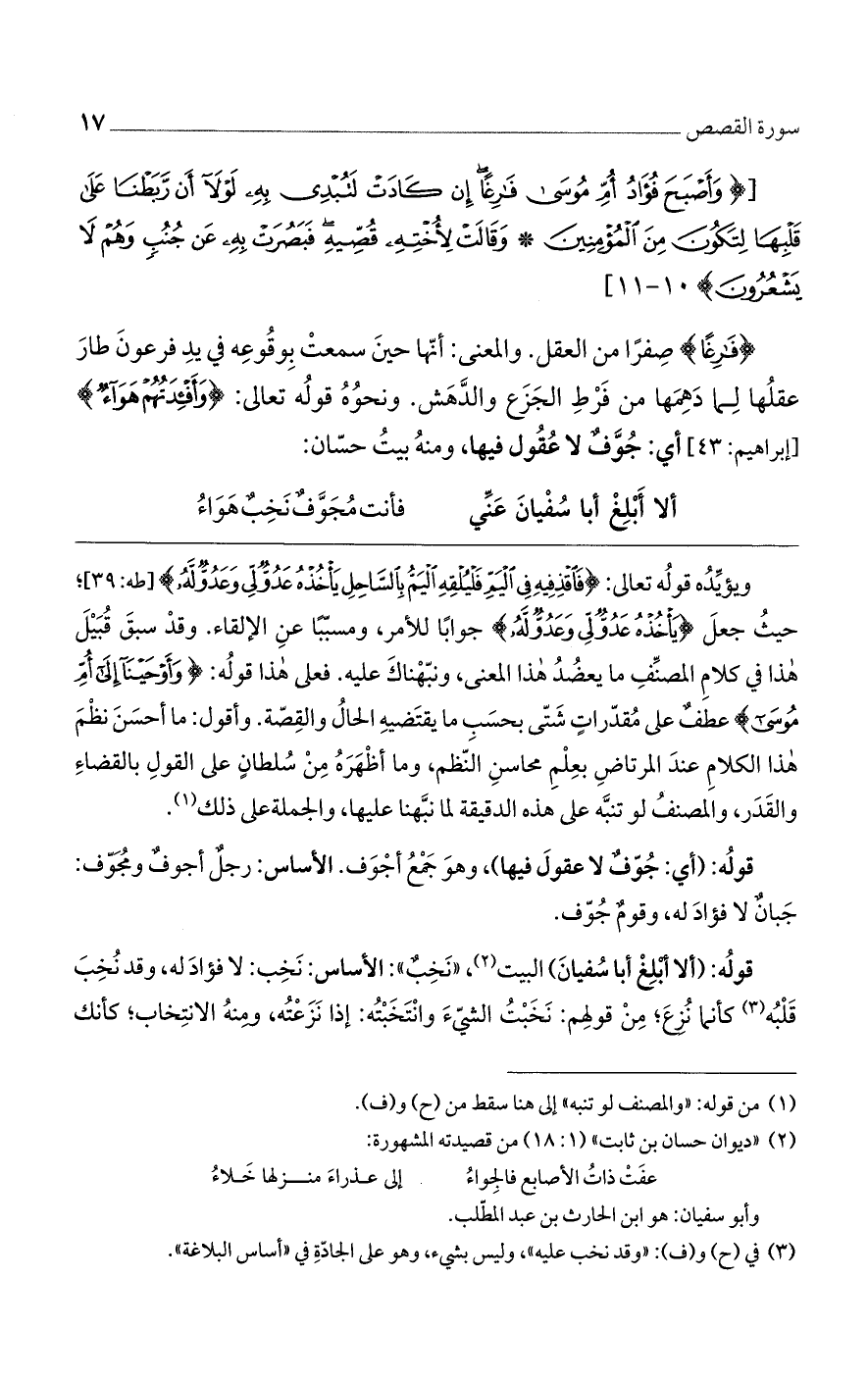 قولُه: (ألا أَبْلِغْ أبا سُفْيانَ) البيت، ((نَخِبٌ)): الأساس: نَخِب: لا فؤادَ له، وقد نُخِبَ قَلْبُه كأنما نُزِعَ؛ مِنْ قولِهم: نَخَبْتُ الشيّءَ وانْتَخَبْتُه: إذا نَزَعْتُه، ومِنهُ الانتِخاب؛ كأنك
