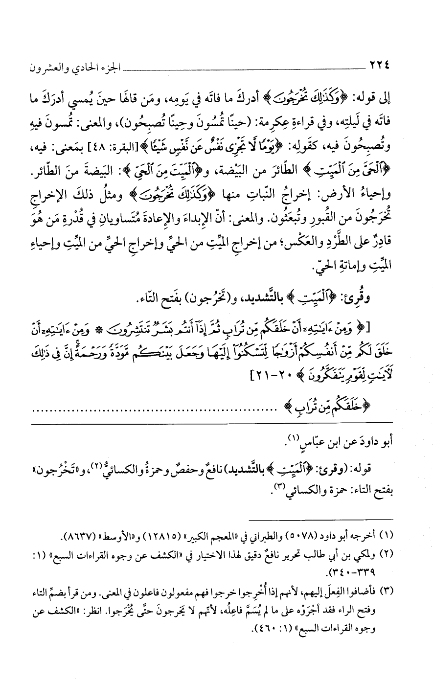 قوله: (وقرئ: {الْمَيِّتِ} بالتَّشديد) نافعٌ وحفصٌ وحمزةُ والكسائيُّ، و ((تَخْرُجون)) بفتح التاء: حمزة والكسائي.