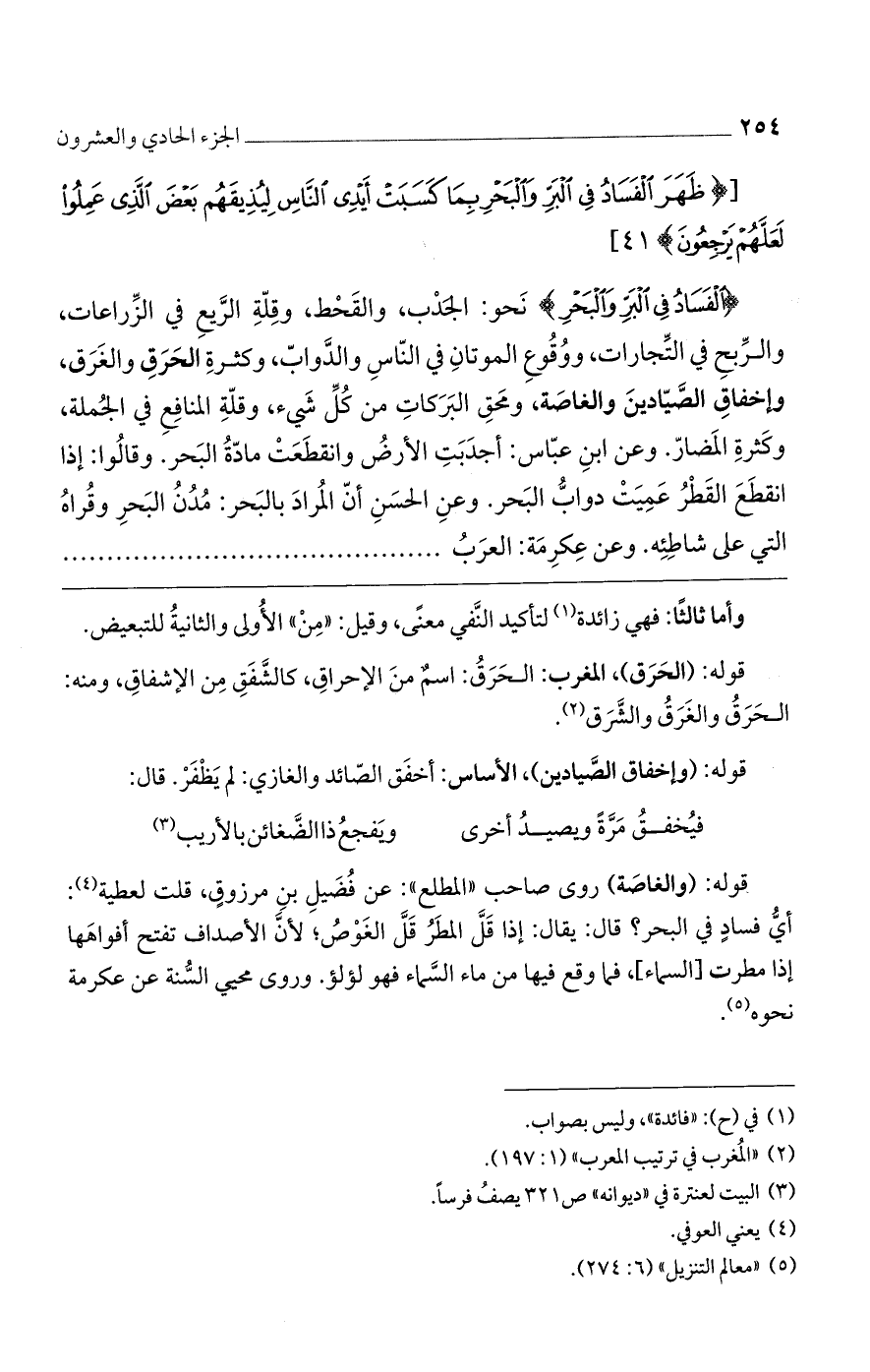 [(ظَهَرَ الْفَسادُ فِي الْبَرِّ وَالْبَحْرِ بِما كَسَبَتْ أَيْدِي النَّاسِ لِيُذِيقَهُمْ بَعْضَ الَّذِي عَمِلُوا لَعَلَّهُمْ يَرْجِعُونَ)] 41 [