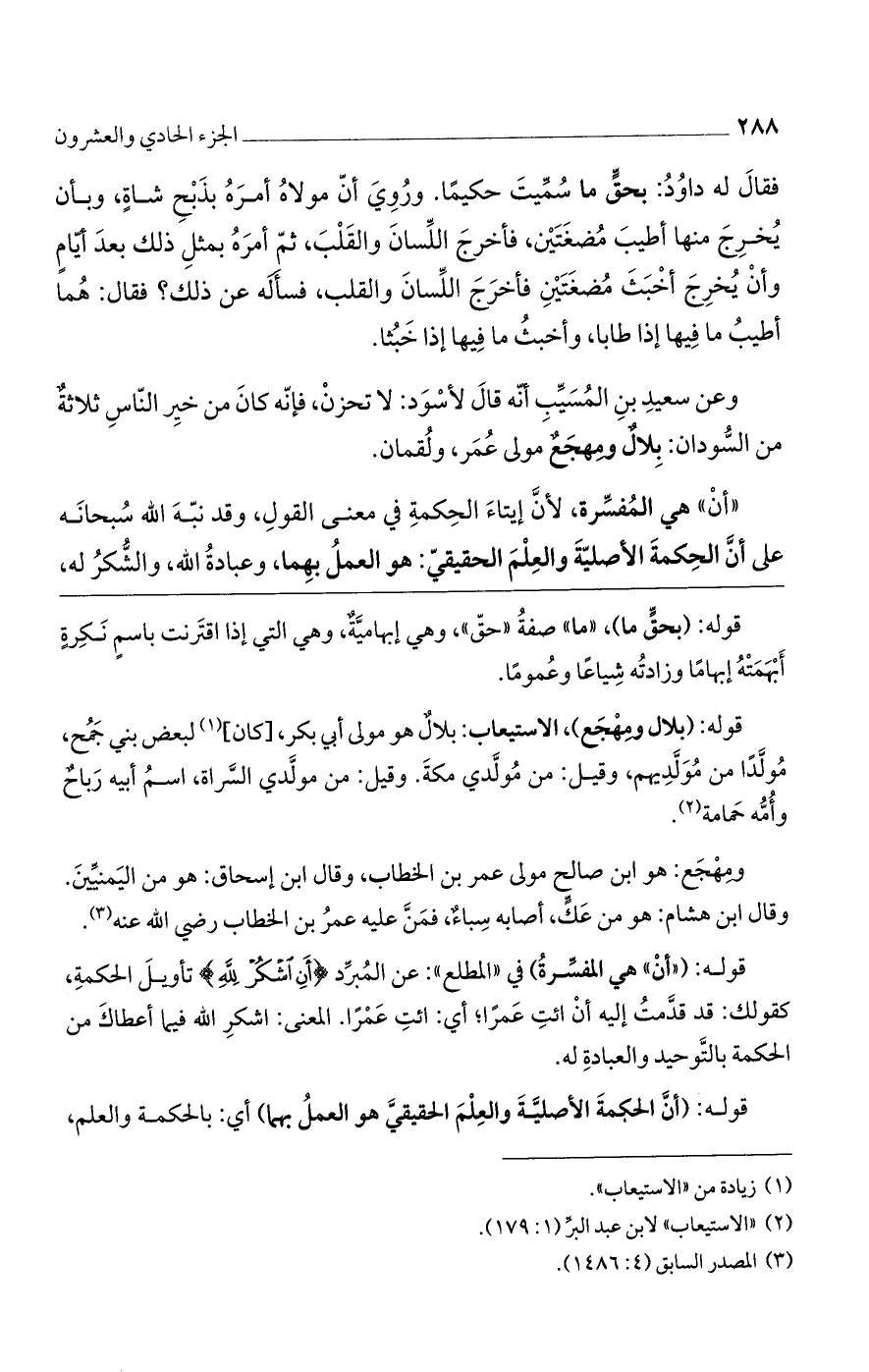 قوله: (أنَّ الحكمةَ الأصليَّةَ والعِلْمَ الحقيقيَّ هو العملُ بهما) أي: بالحكمة والعلم،