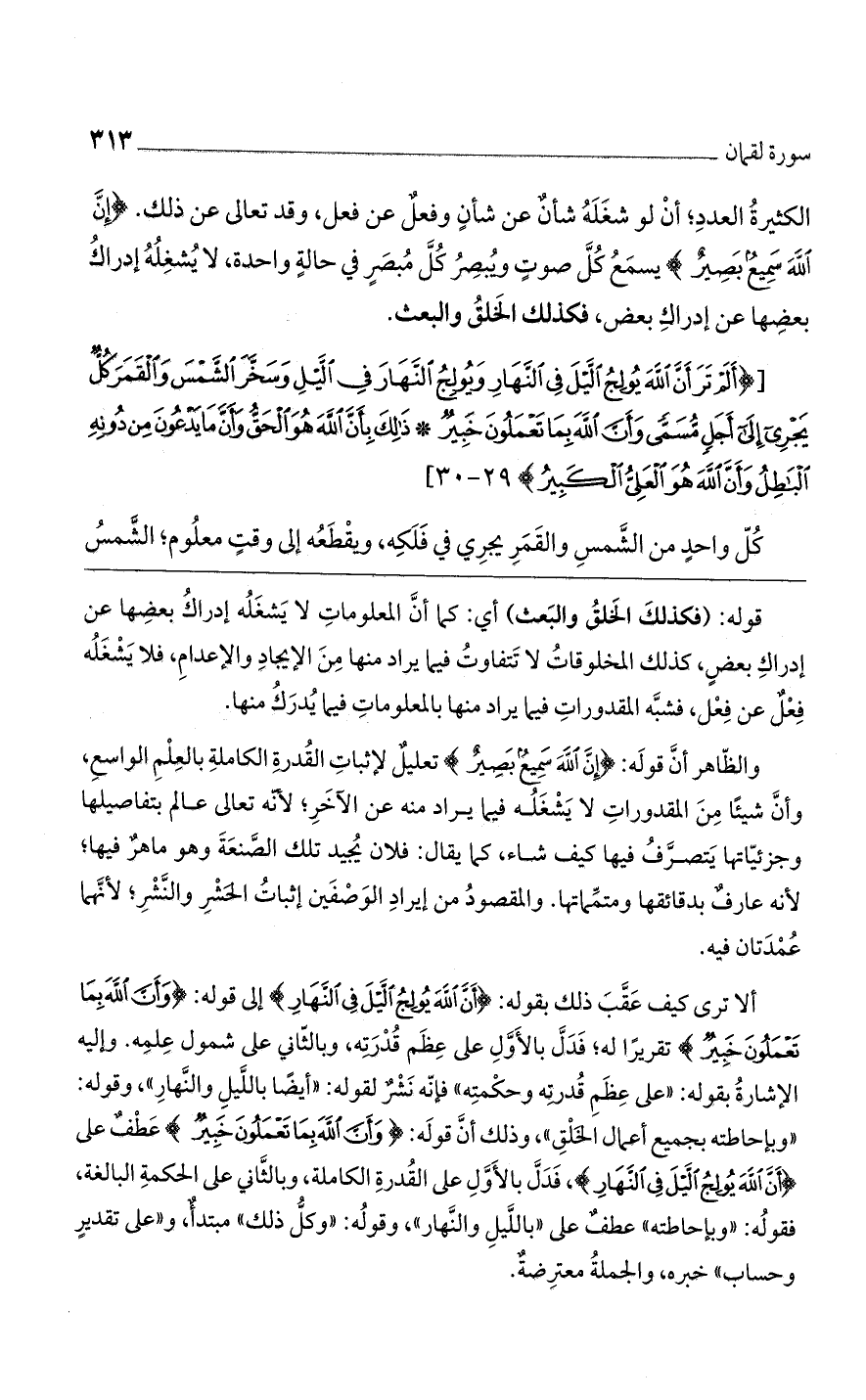 [أَلَمْ تَرَ أَنَّ الله يُولِجُ اللَّيْلَ فِي النَّهارِ وَيُولِجُ النَّهارَ فِي اللَّيْلِ وَسَخَّرَ الشَّمْسَ وَالْقَمَرَ كُلٌّ يَجْرِي إِلى أَجَلٍ مُسَمًّى وَأَنَّ الله بِما تَعْمَلُونَ خَبِيرٌ (29) ذلِكَ بِأَنَّ الله هُوَ الْحَقُّ وَأَنَّ ما يَدْعُونَ مِنْ دُونِهِ الْباطِلُ وَأَنَّ الله هُوَ الْعَلِيُّ الْكَبِيرُ)] 29 - 30 [