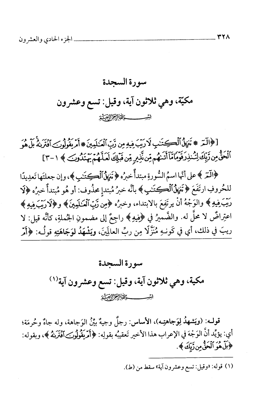 [الم (1) تَنْزِيلُ الْكِتابِ لا رَيْبَ فِيهِ مِنْ رَبِّ الْعالَمِينَ (2) أَمْ يَقُولُونَ افْتَراهُ بَلْ هُوَ الْحَقُّ مِنْ رَبِّكَ لِتُنْذِرَ قَوْماً ما أَتاهُمْ مِنْ نَذِيرٍ مِنْ قَبْلِكَ لَعَلَّهُمْ يَهْتَدُونَ)] 1 - 3 [