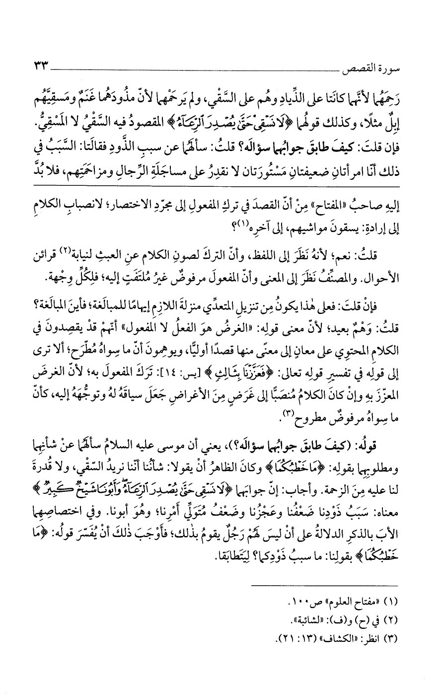 إليهِ صاحبُ ((المفتاح)) مِنْ أنّ القصدَ في تركِ المفعولِ إلى مجرّدِ الاختصار؛ لانصبابِ الكلامِ إلى إرادةِ: يسقونَ مواشيهم، إلى آخرِه؟