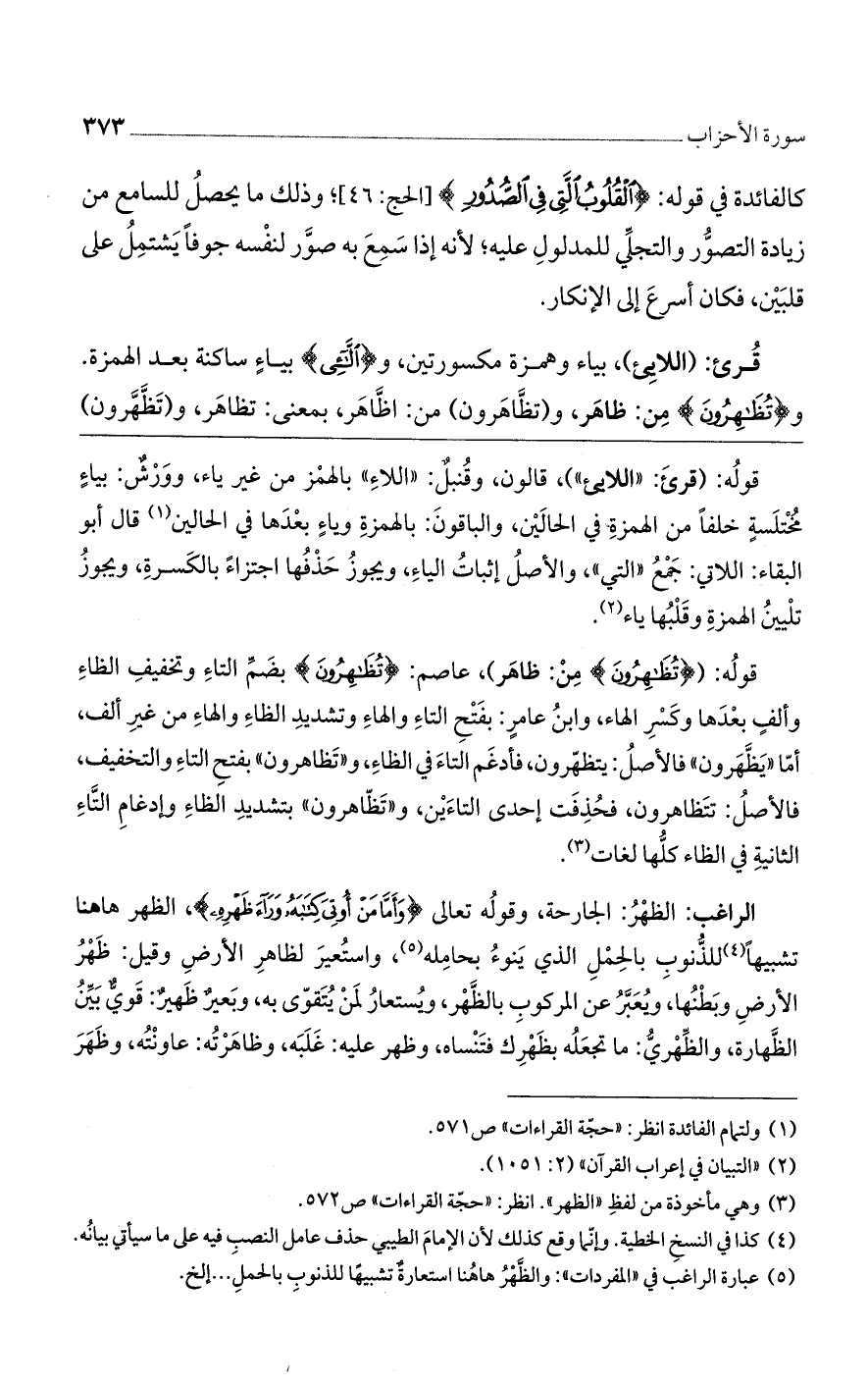 قرئ: (اللايئ)، بياء وهمزة مكسورتين، و (اللائي) بياء ساكنة بعد الهمزة. و (تظاهرون) من: ظاهر، و (تظاهرون) من: اظاهر، بمعنى: تظاهر. و (تظهرون)