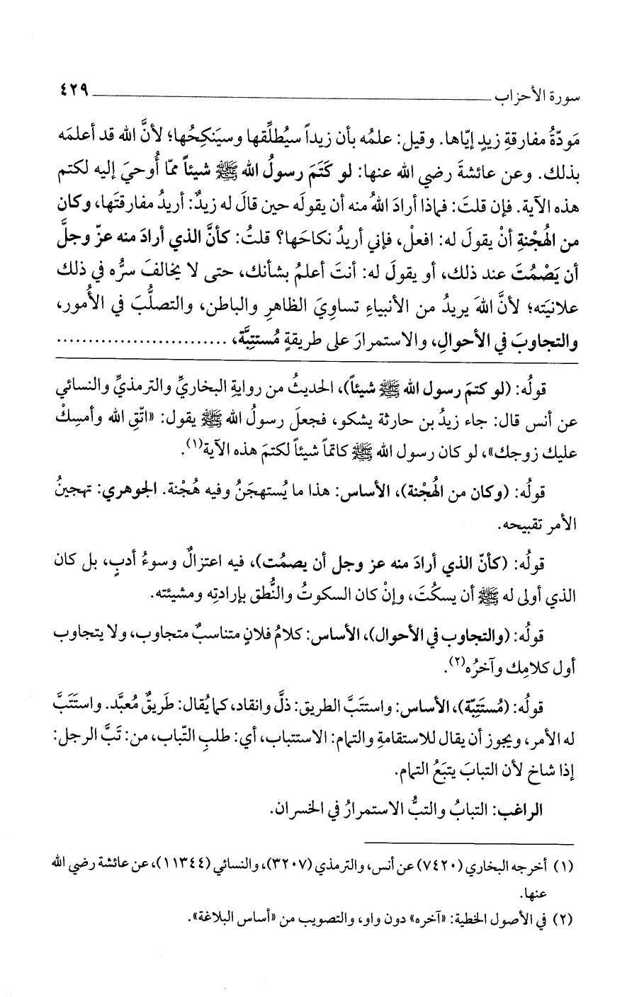 قولُه: (لو كتمَ رسول الله صلى الله عليه وسلم شيئًا)، الحديثُ من روايةِ البخاريِّ والترمذيِّ والنسائي عن أنس قال: جاء زيدُ بن حارثة يشكو، فجعلَ رسولُ الله صلى الله عليه وسلم يقول: ((اتّقِ الله وأمسِك عليك زوجك))، لو كان رسول الله صلى الله عليه وسلم كاتمًا شيئًا لكتَم هذه الآية.