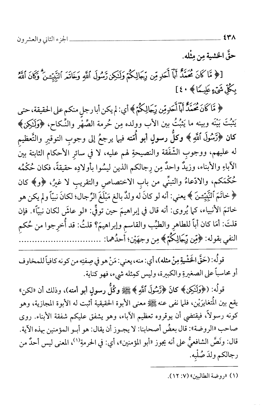 [(ما كانَ مُحَمَّدٌ أَبا أَحَدٍ مِنْ رِجالِكُمْ وَلكِنْ رَسُولَ الله وَخاتَمَ النَّبِيِّينَ وَكانَ الله بِكُلِّ شَيْءٍ عَلِيماً)] 40 [