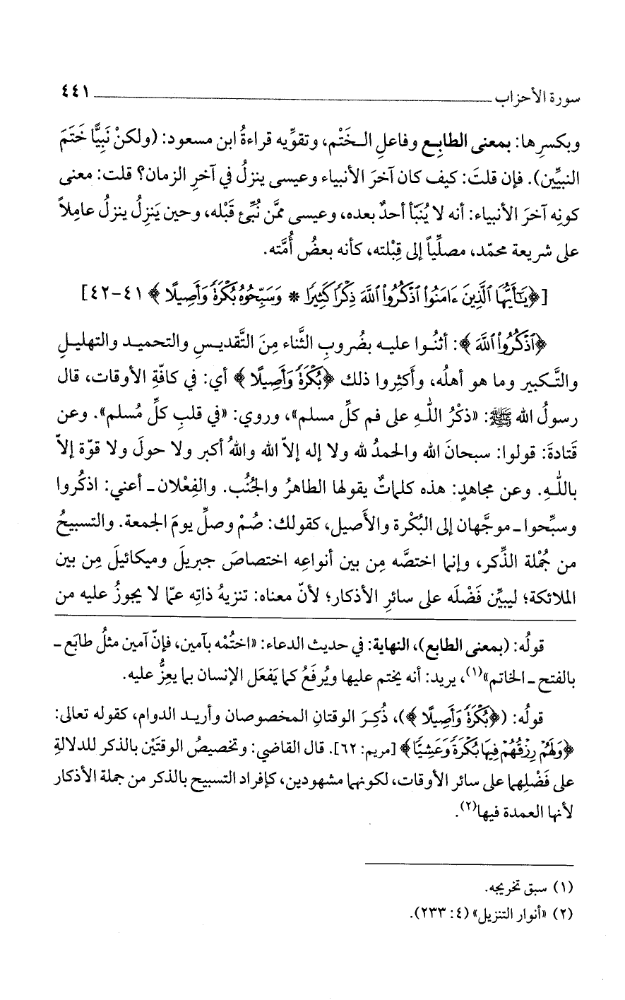 [(يا أَيُّهَا الَّذِينَ آمَنُوا اذْكُرُوا الله ذِكْراً كَثِيراً (41) وَسَبِّحُوهُ بُكْرَةً وَأَصِيلاً)] 41 - 42 [