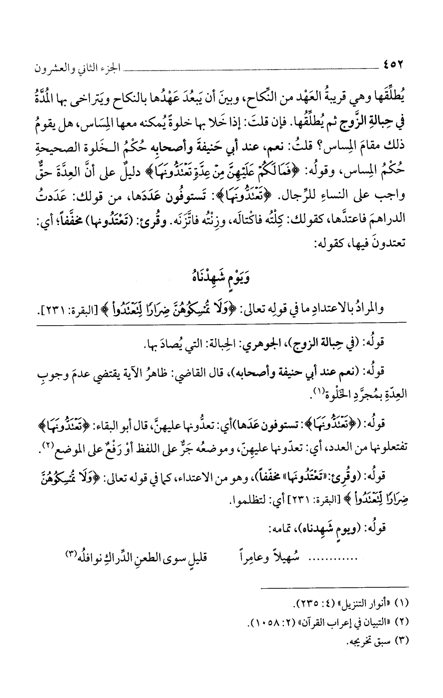 قولهُ: ({تَعْتَدُّونَهَا}: تستوفون عَدَها) أي: تعدُّونها عليهنَّ، قال أبو البقاء: {تَعْتَدُّونَهَا} تفتعلونها من العدد، أي: تعدّونها عليهِنّ، وموضعُه جَرٌّ على اللفظ أوْ رَفْعٌ على الموضع.