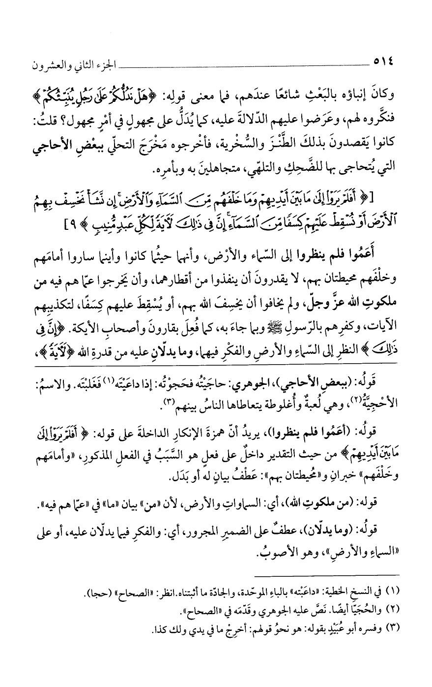 [أَفَلَمْ يَرَوْا إِلى ما بَيْنَ أَيْدِيهِمْ وَما خَلْفَهُمْ مِنَ السَّماءِ وَالْأَرْضِ إِنْ نَشَا نَخْسِفْ بِهِمُ الْأَرْضَ أَوْ نُسْقِطْ عَلَيْهِمْ كِسَفاً مِنَ السَّماءِ إِنَّ فِي ذلِكَ لَآيَةً لِكُلِّ عَبْدٍ مُنِيبٍ)] 9 [